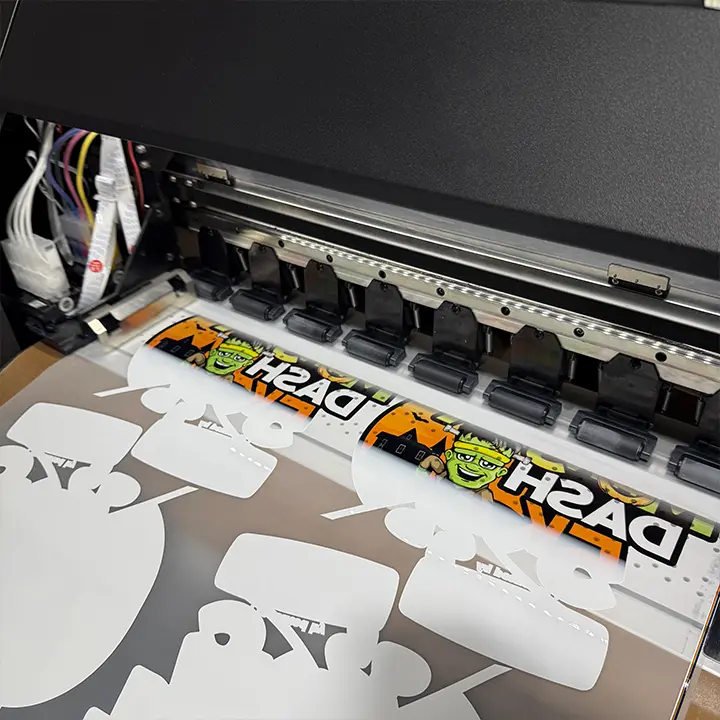 ·DTF works with various garment colors, including white ink.