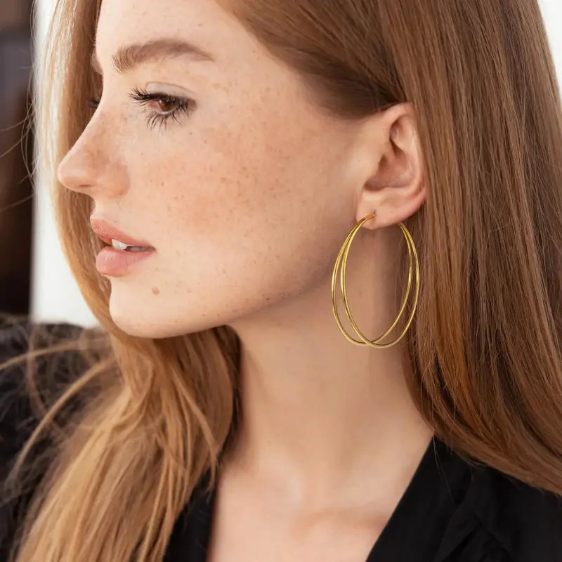 [Lightweight Big Hoop Earrings]Our double layer large hoop earrings come in a variety of sizes:30/40/50/60MM, so you can choose the one that best suits you for your personal style. At the same time, the large double hoop earring can not only decorate the face shape, but also each pair of gold hoops is light, making them more suitable for long-term wear.