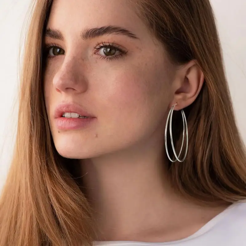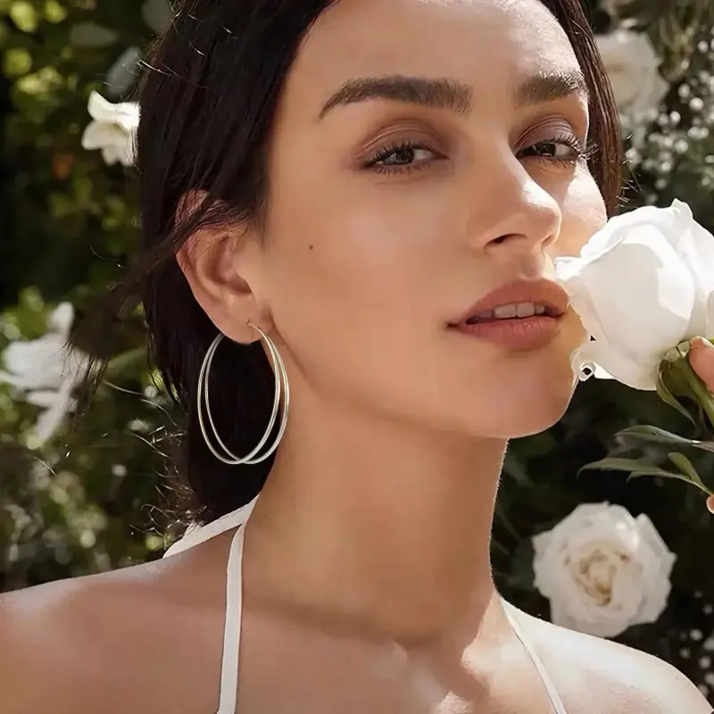 [Large Thin Gold Hoop Earrings]Our unique large double hoops earrings for women add a sense of layering compared to ordinary single thin hoop earrings, making them more eye-catching and decorate the face shape.And the secure clip-top design makes gold hoop earrings for women super easy and comfortable to put on and take off.