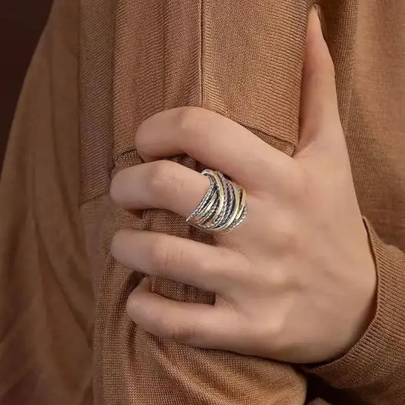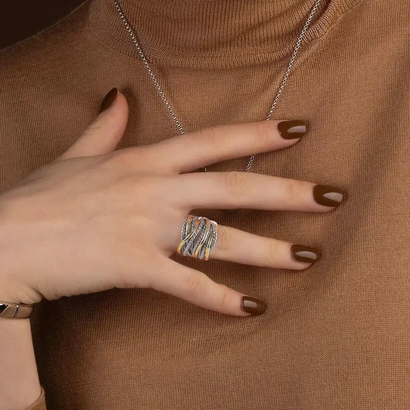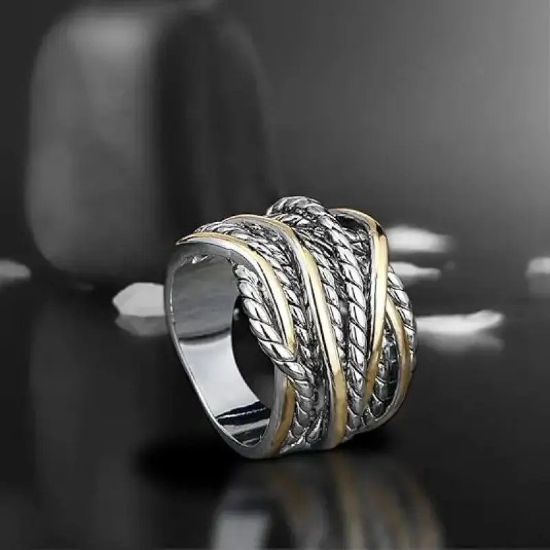 Elevate your style with the Intertwined Band Ring, a bold yet elegant piece that combines retro charm with modern versatility.