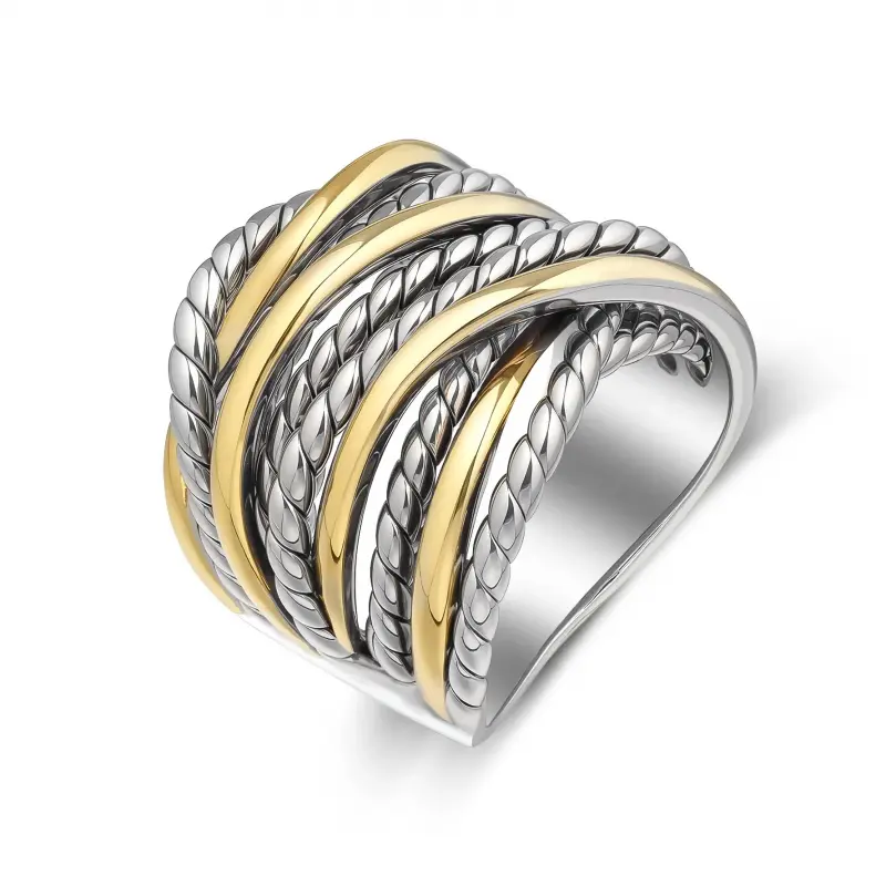 Intertwined Metallic Band Ring - Textured Statement Jewelry for Women