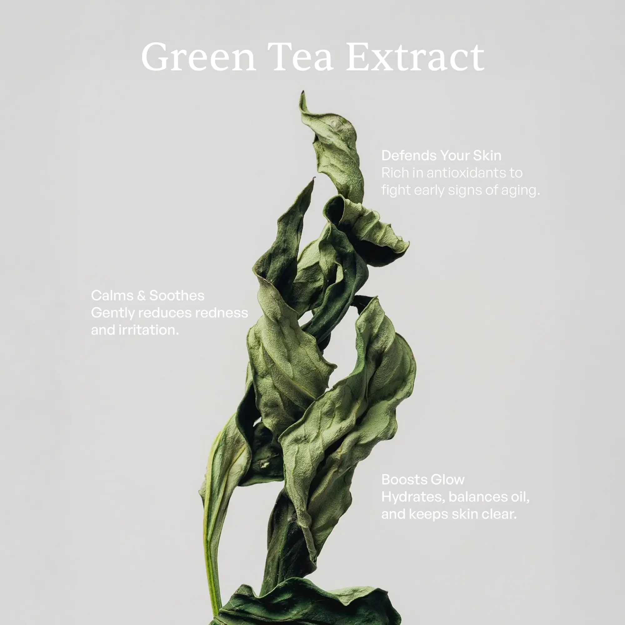Green Tea Extract – A powerful antioxidant that protects against premature aging.