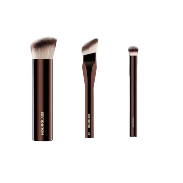 Achieve flawless, airbrushed skin with the Hourglass Trio Brush Set — a complete solution for foundation, blending, and setting your makeup to perfection.