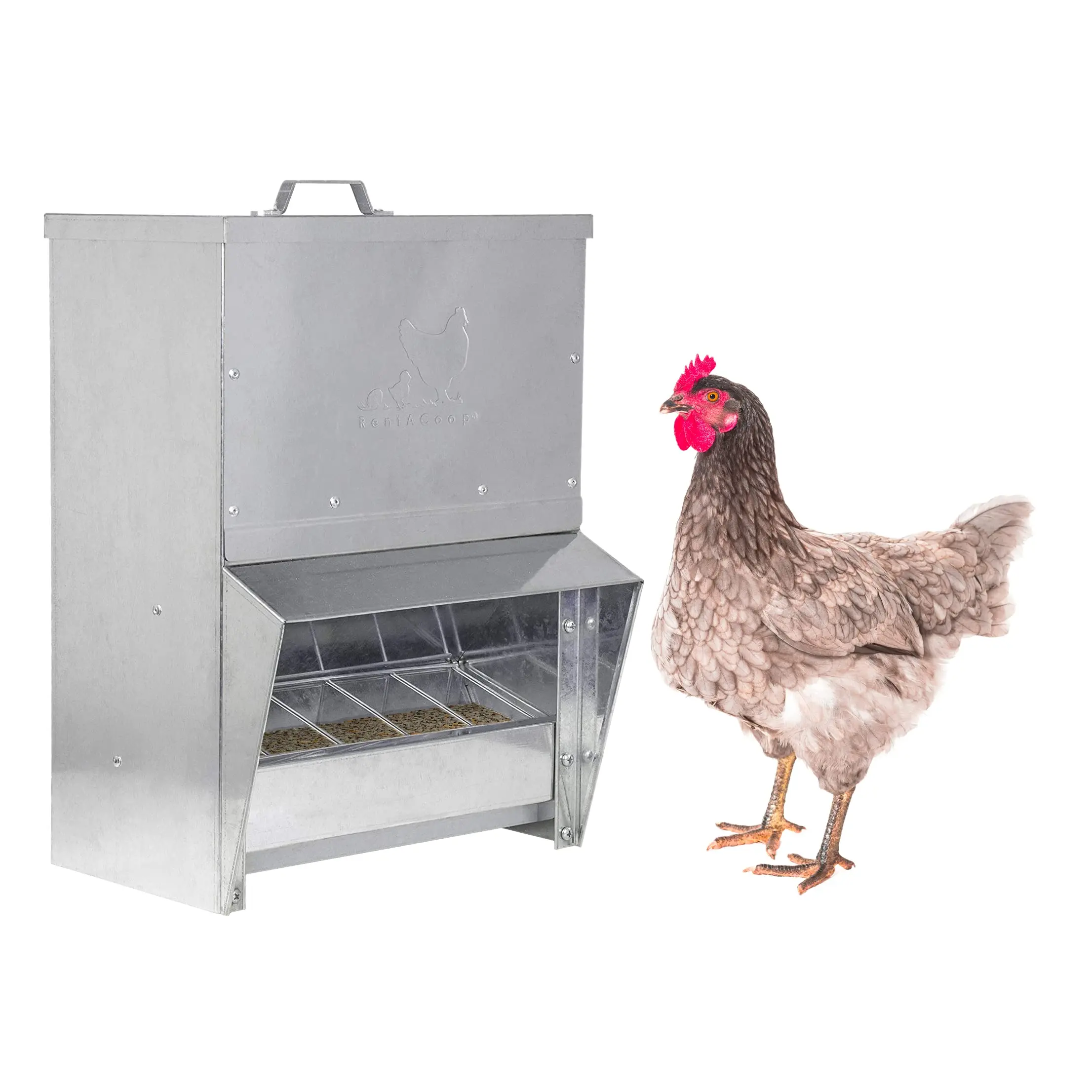 Galvanized Chicken Tough Feeder, Weatherproof Poultry Food Dispenser with Lid - 25lb