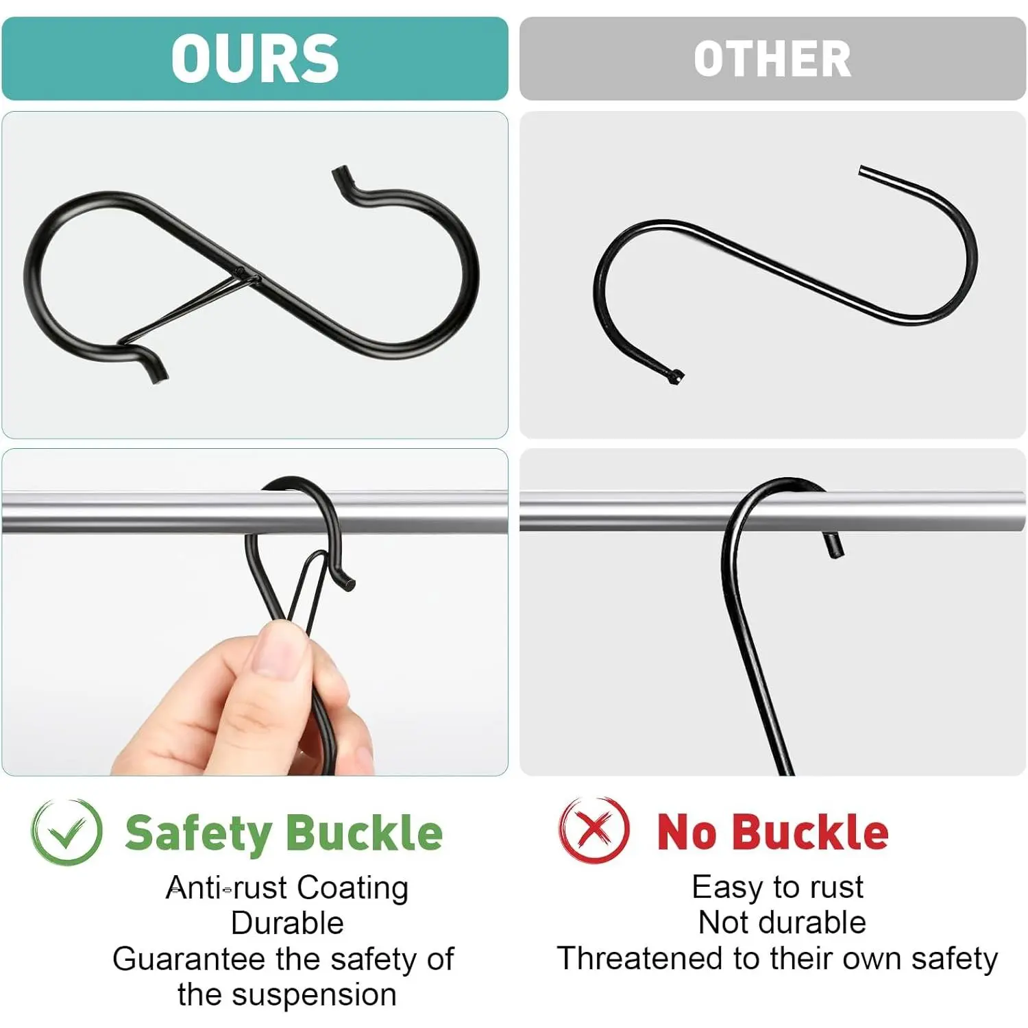 12 Pcs S Hooks for Hanging Heavy Duty, 3.5-inch Heavy Duty Metal S Hook with Safety Buckle, Suitable for 0.5 inch Rods, S Hook for Hanging Plants, Closet, Kitchen Utensil, Pot, Pan, Bags