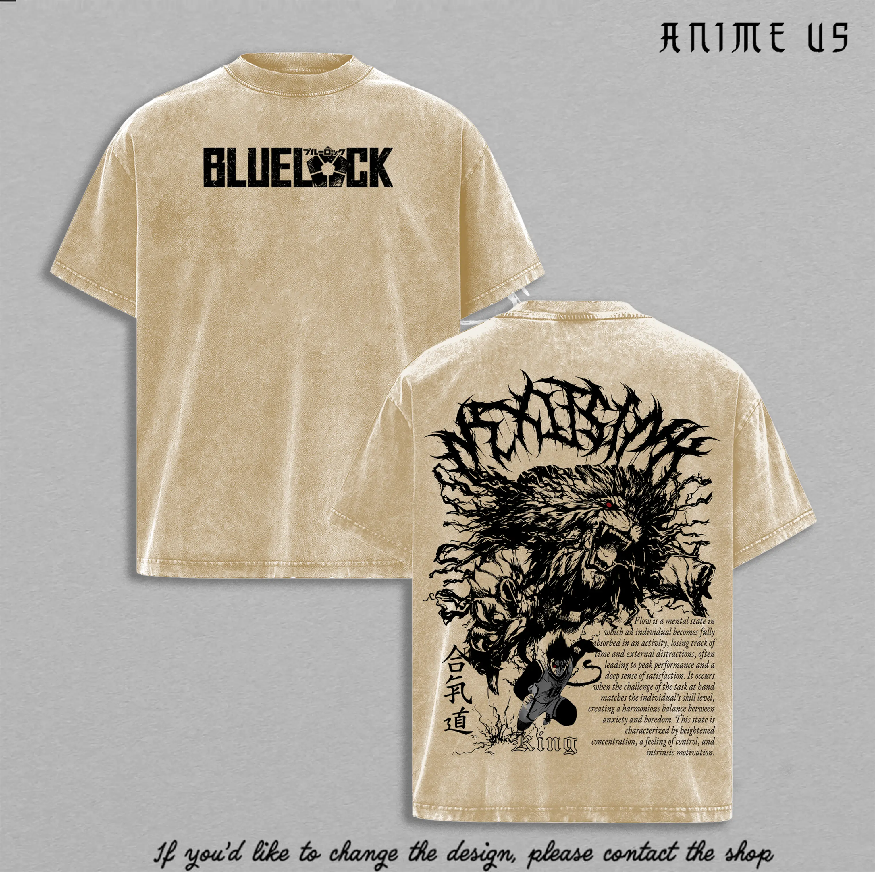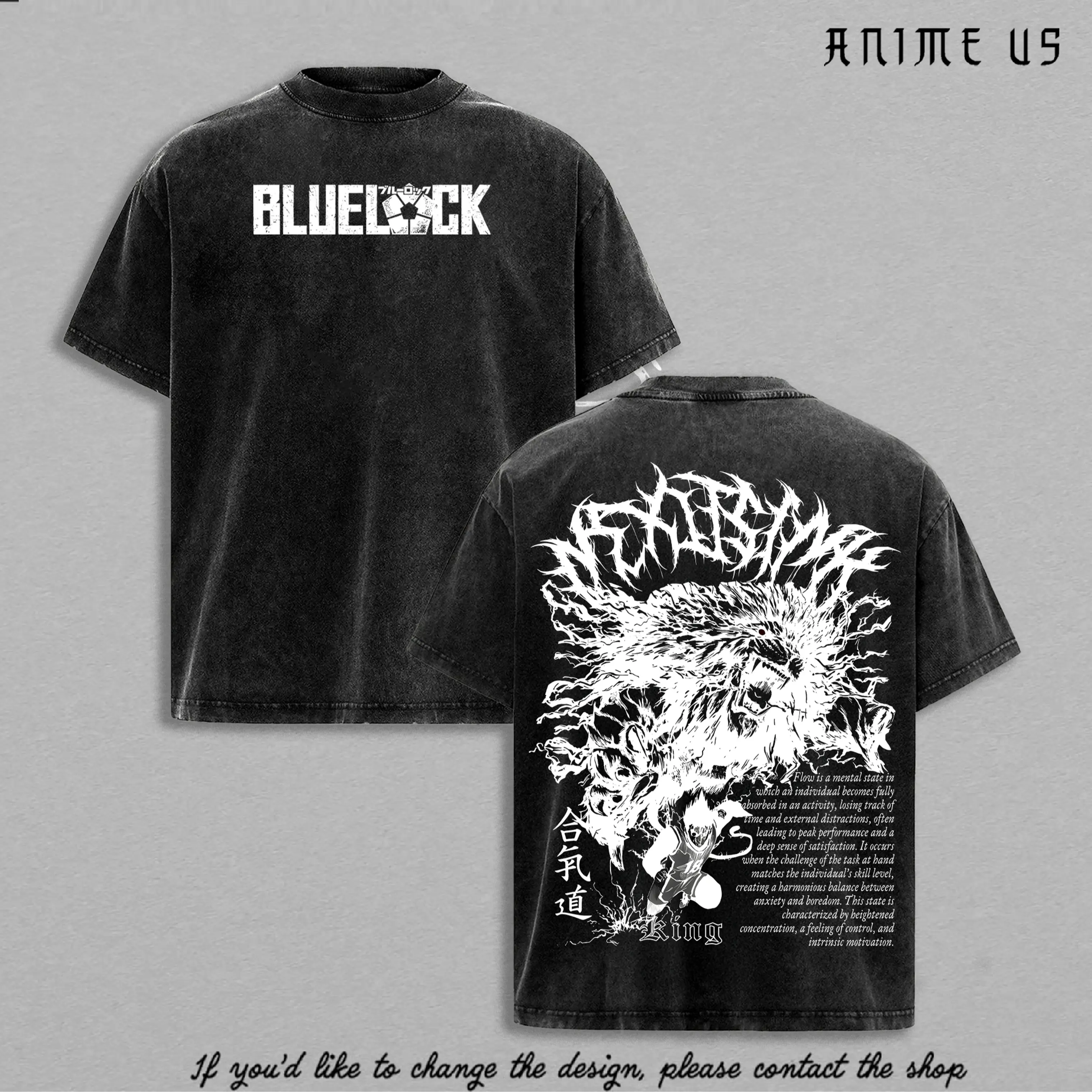Shoei Baro Blue Lock King Soccer Anime Vintage Washed Oversized Graphic Tee Ego Striker Football Anime Streetwear Shirt