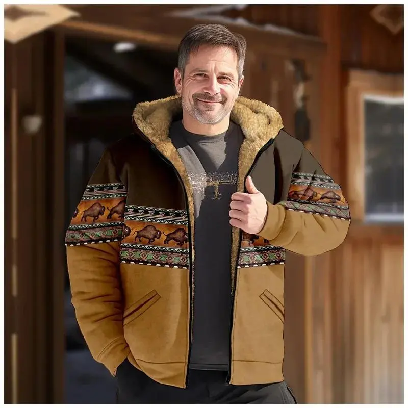 ✨Elevate your style with our Men's Jacket Cardigans!🌟These Native Aztec Buffalo Coats are perfect for festivals, outdoor hunting, and winter casual wear.The printed thick fleece ensures warmth and comfort.Ideal for streetwear enthusiasts, these coats come in four fleece coat options.