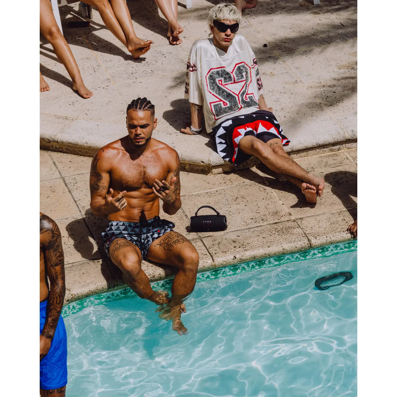 Details: 4 way stretch fabric swimsuit Side pockets Branded elastic waistband Inner perforated fabric for comfort and support Back pocket with flap