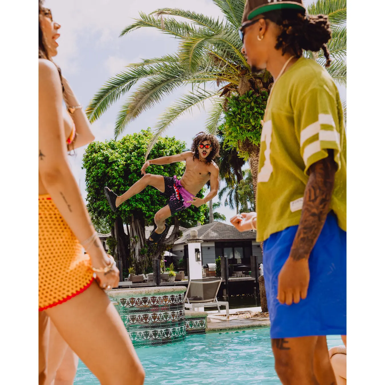 Details: 4 way stretch fabric swimsuit Side pockets Branded elastic waistband Inner perforated fabric for comfort and support Back pocket with flap