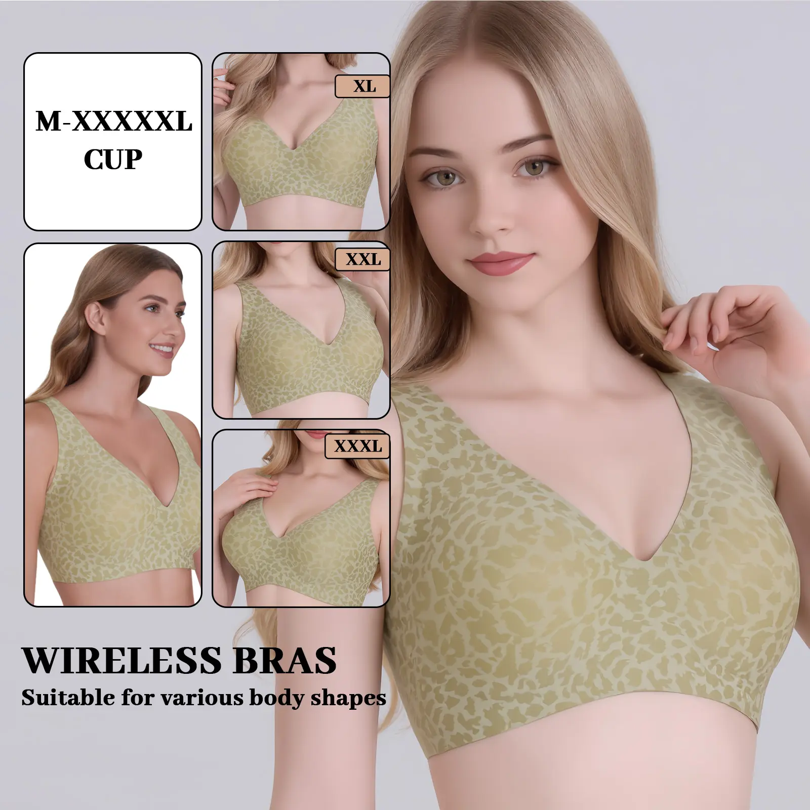 Popilush Seamless Wireless Leopard Print Jelly Bra - Adjustable strapless sexy V-neck one-piece molded cup bra, comfortable and supportive Minimalist Fit Womenswear