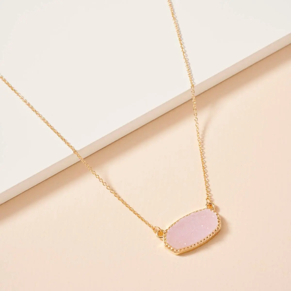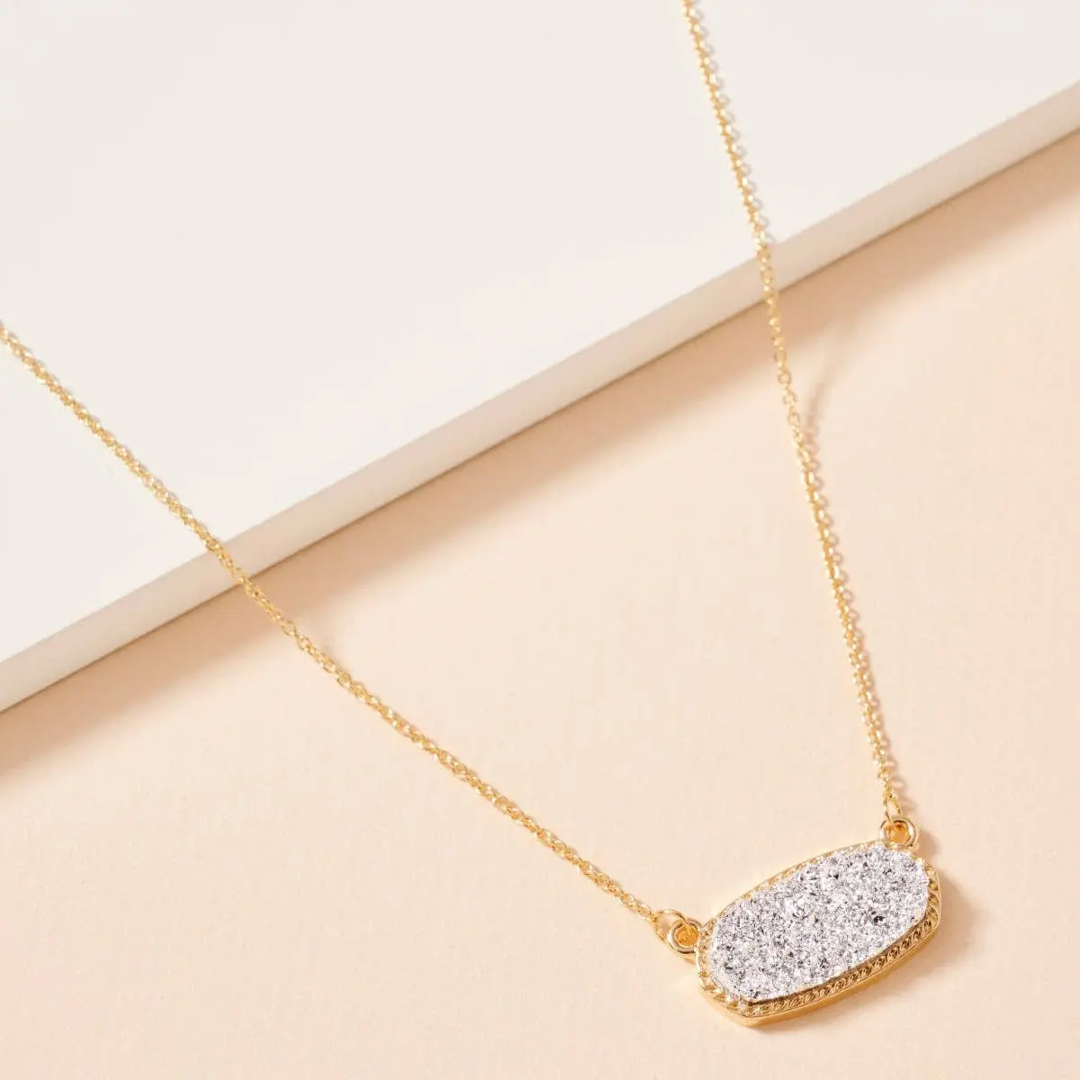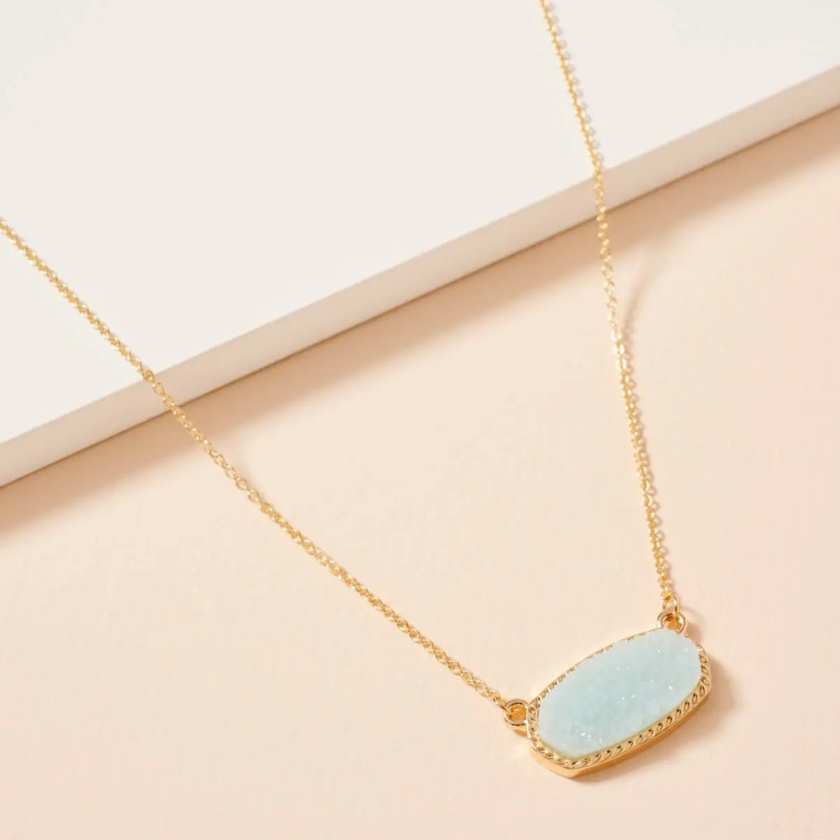 This lovely Druzy Stone Charm Necklace adds a touch of charm to any outfit. Its short length makes it perfect for layering or wearing alone, while the unique Druzy stone adds a touch of sparkle. A lovely addition to any jewelry collection.