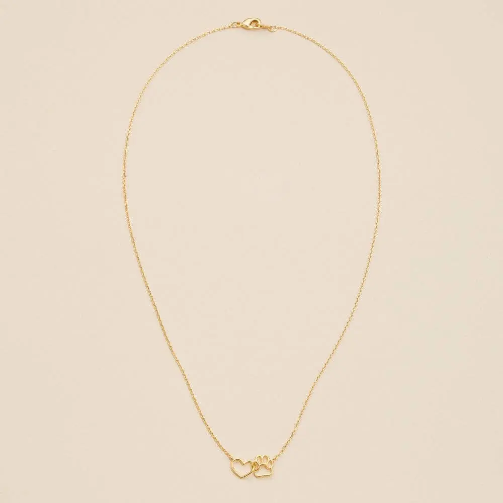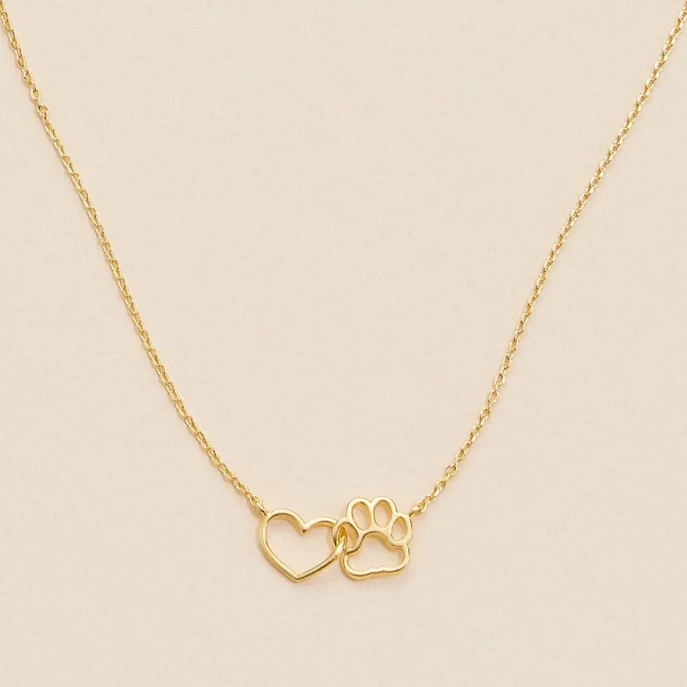 Show your love for pets with our Interlocking Heart & Paw Charm Necklace. Featuring a delicate heart intertwined with a paw charm, this necklace is the perfect accessory for any animal lover. Its short length makes it versatile for layering or wearing alone, adding a meaningful touch of charm to any outfit.