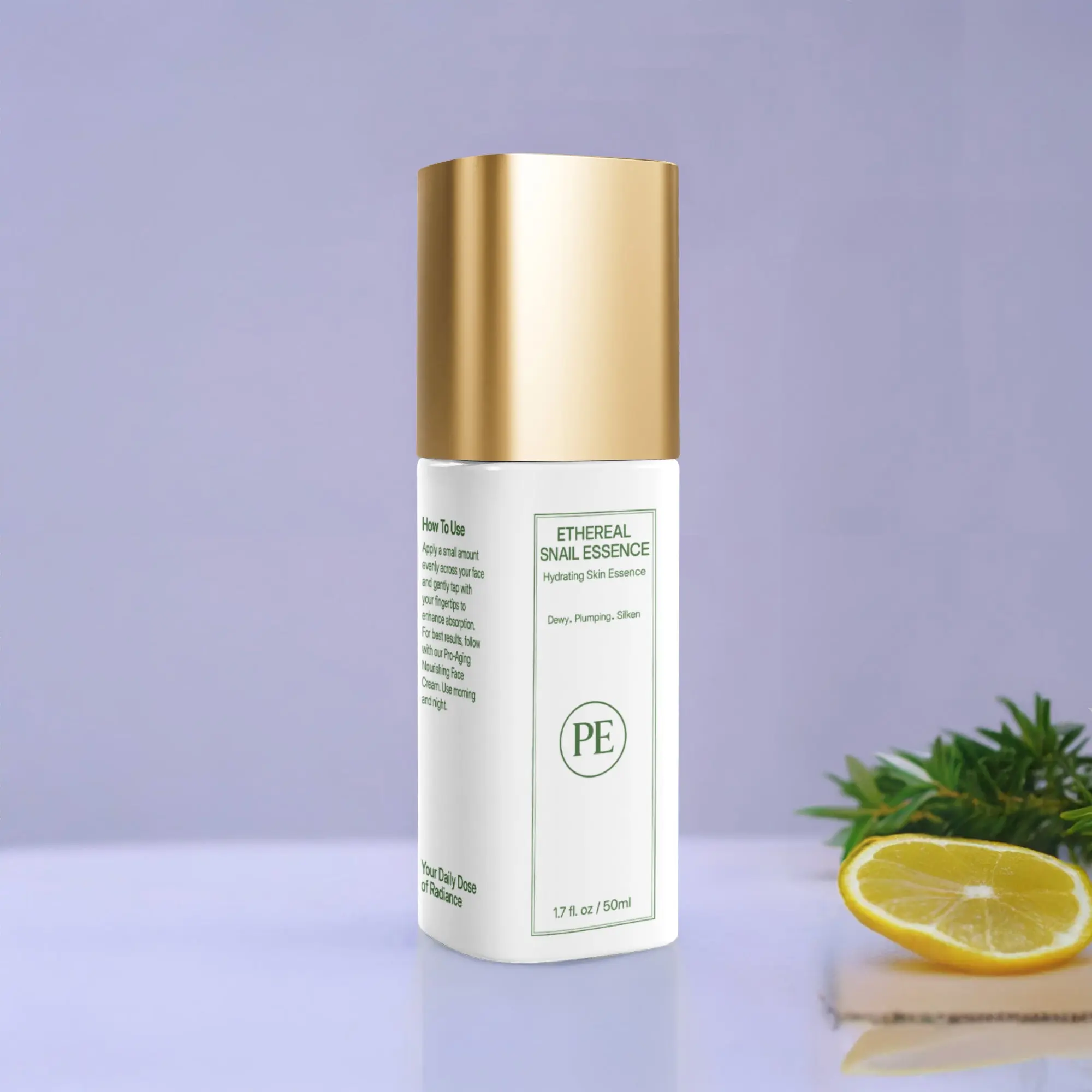 Elevate your skincare ritual with our Ethereal Snail Essence. This ultra-light treatment melts effortlessly into the skin, enhancing your natural luminosity for a radiant, mirror-like glow. Infused with nourishing snail mucin, it delivers deep hydration that keeps your complexion moisturized and luminous all day long. Perfect for achieving a refreshed and healthy look, this essence is your go-to for a flawless, dewy finish.