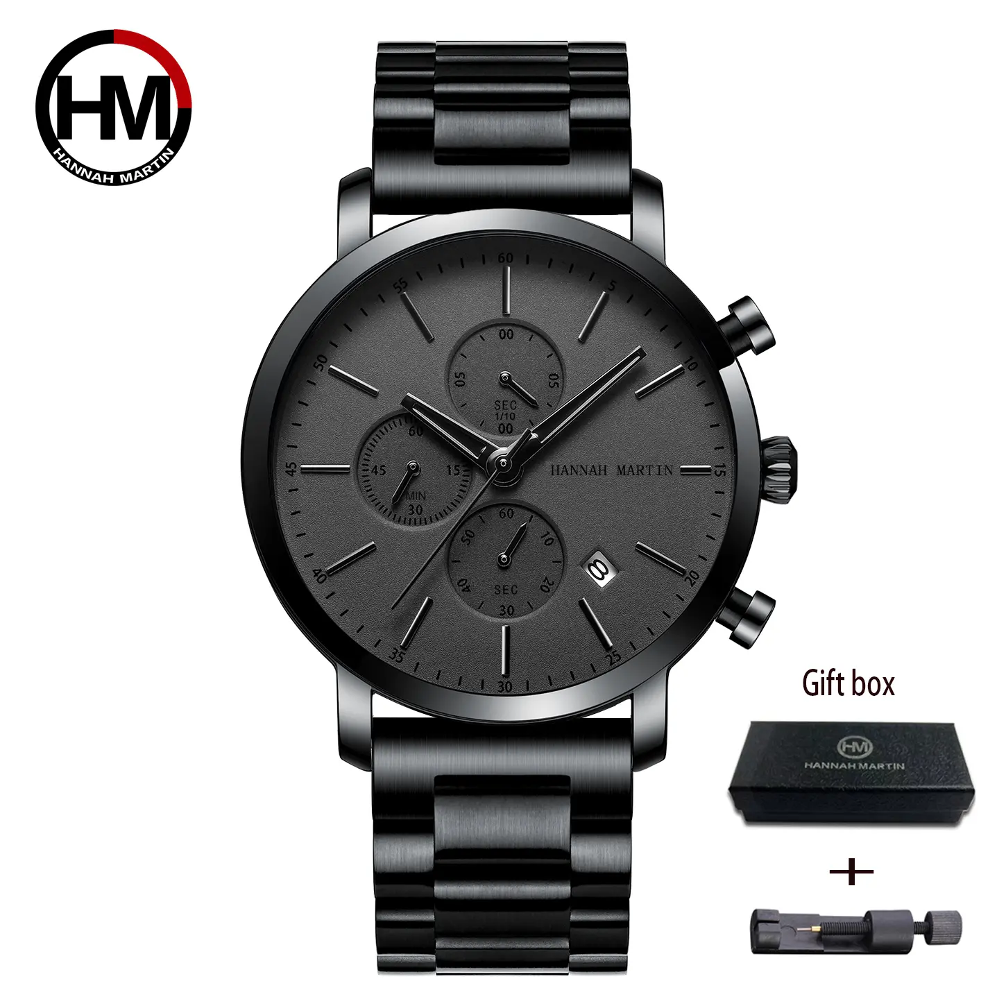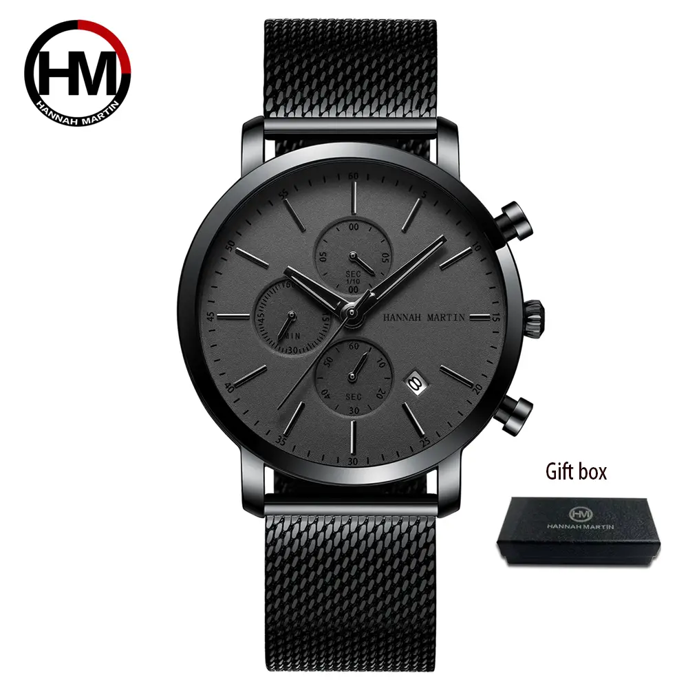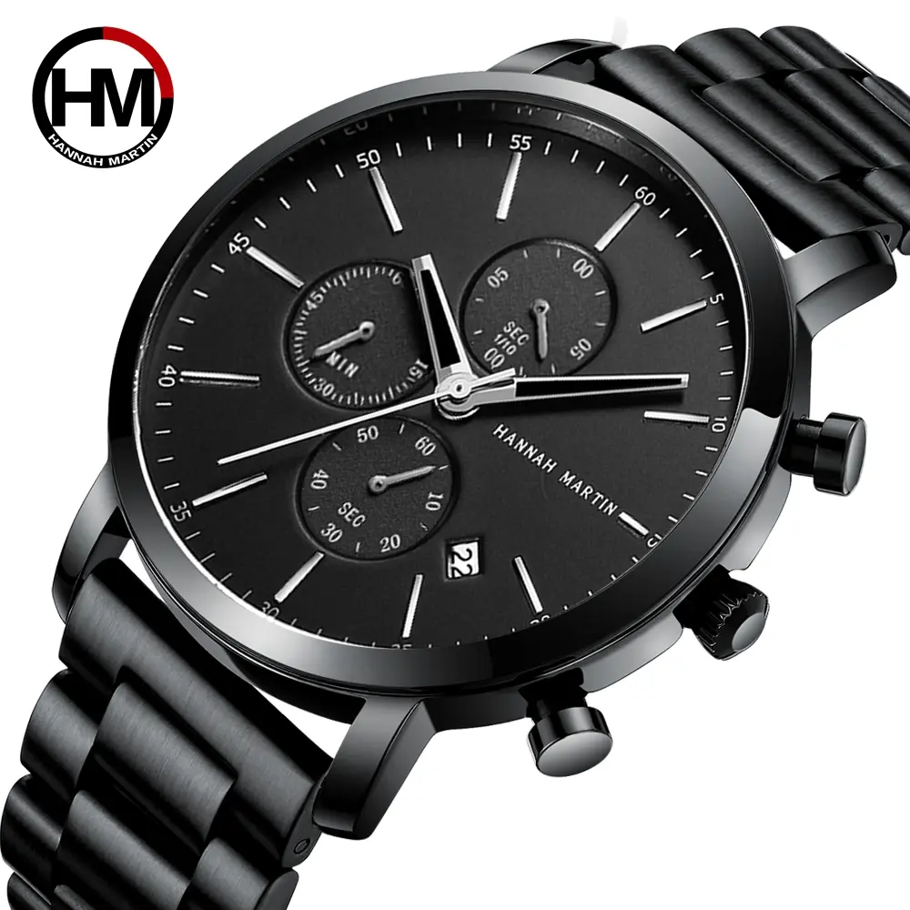 Hannah Martin Multifunctional Sports Men Sports Watch Black Dial Stainless Steel
