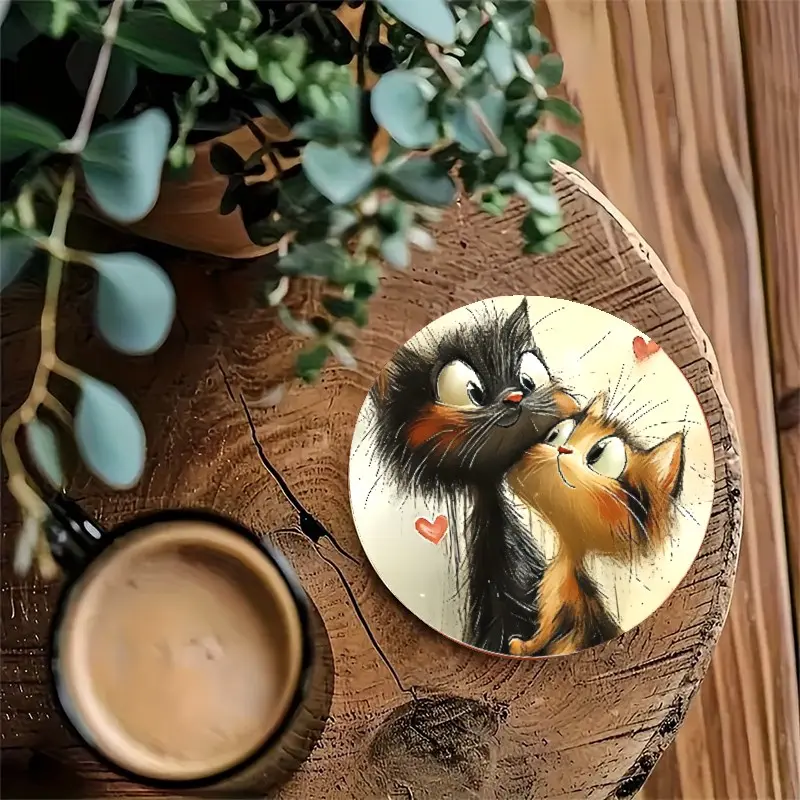 【Cute Cat Theme】: Features adorable cat illustrations, perfect for coffee lovers and couples who appreciate whimsical decor.