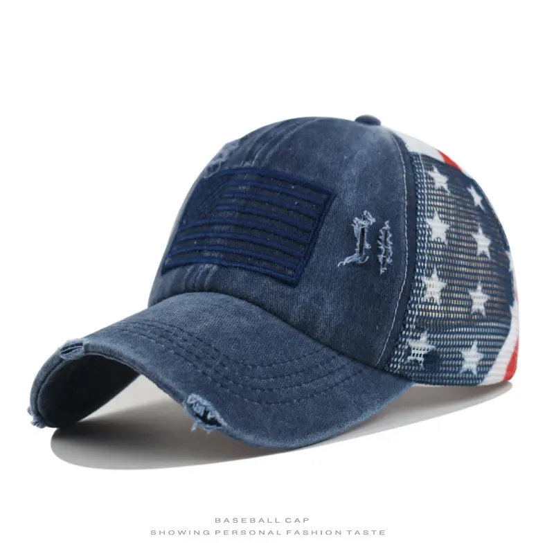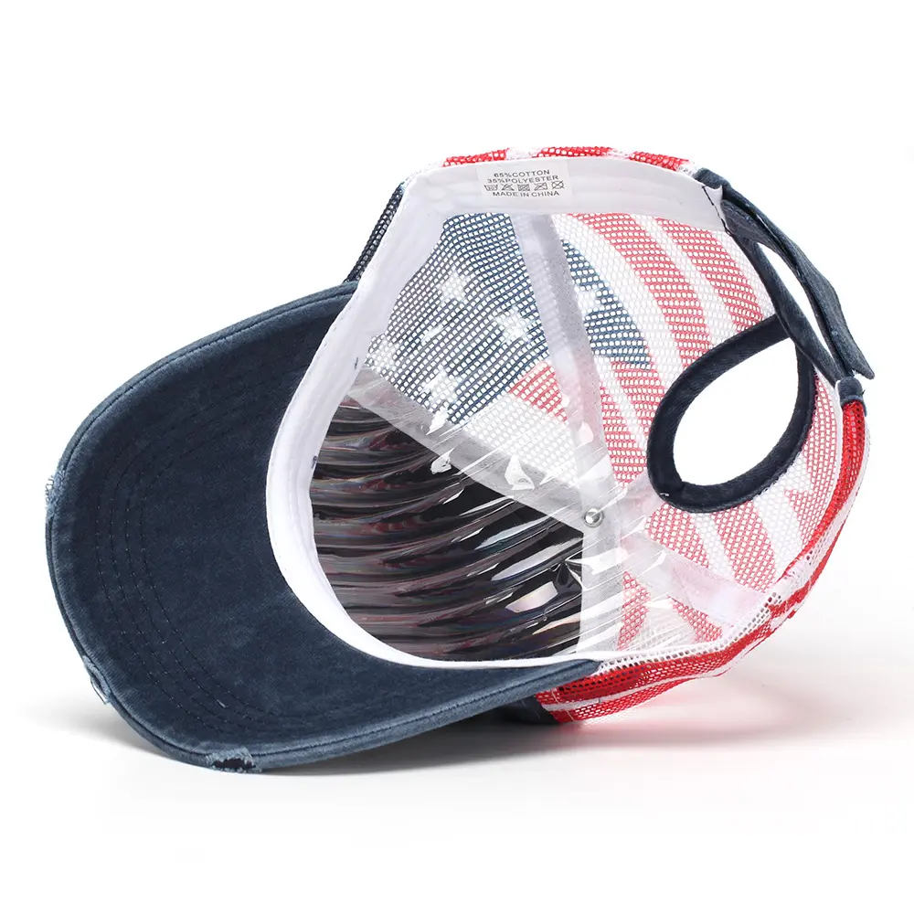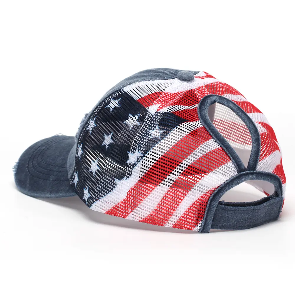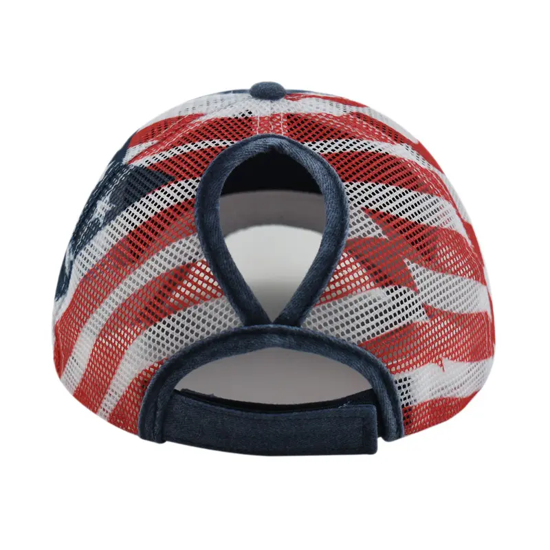 [ POPULAR PRODUCTS ] C.C Cotton Brushed Embroidery Criss-Cross Baseball Cap with American Flag Printed Mesh, Adjustable Fit, Lightweight & Durable, 100% Polyester