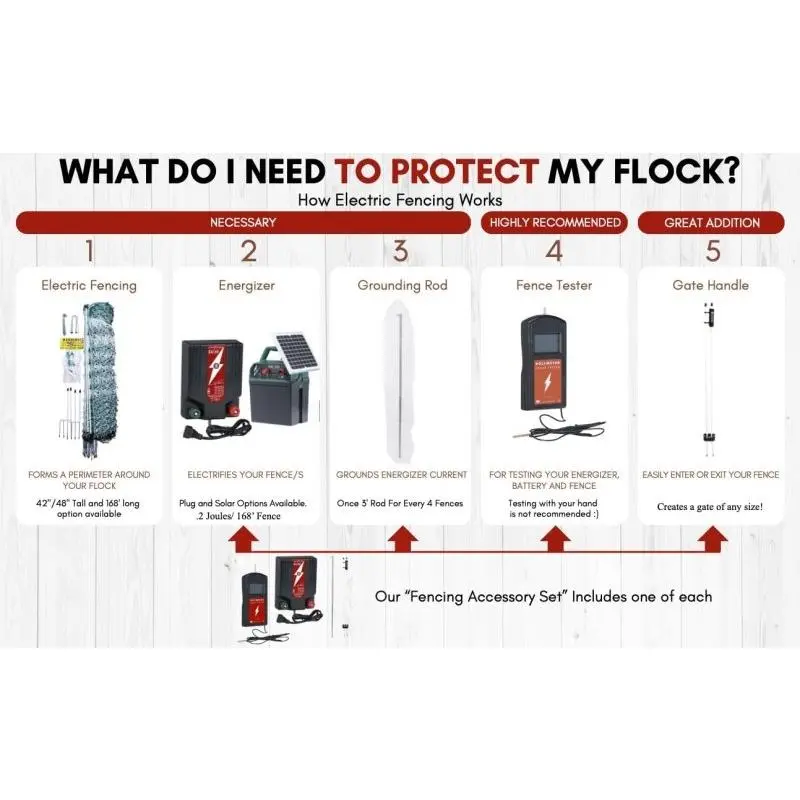 ·42" Electric Fence for Poultry and Other Animals: Expand your animals' accessible space and keep them safe from predators, out of gardens, and away from roads and other hazards. NOTE: ENERGIZER NOT INCLUDED