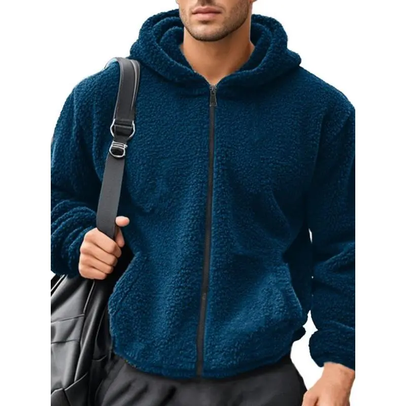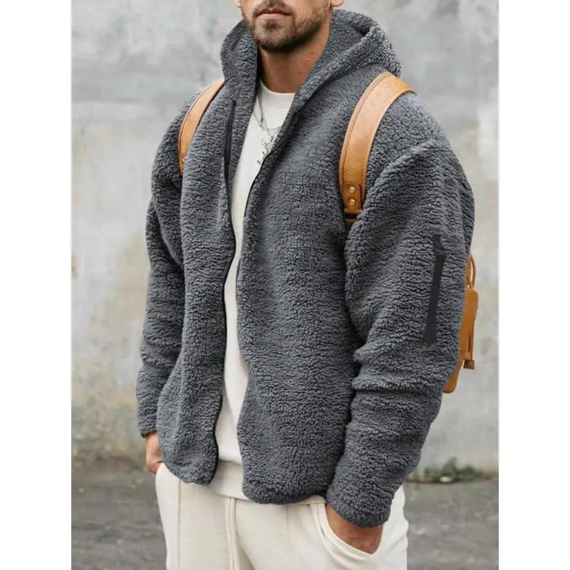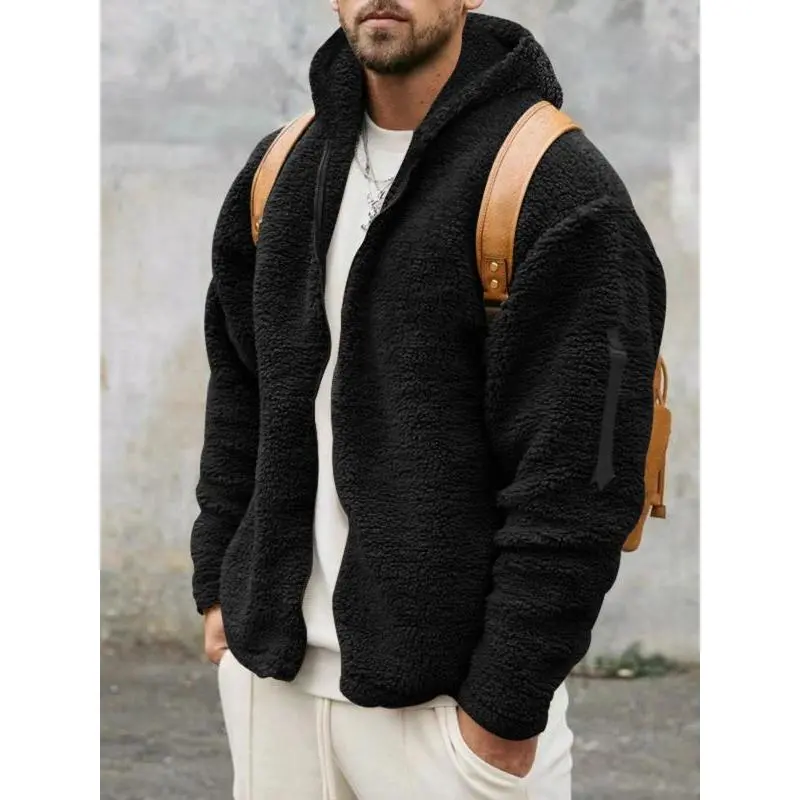 Men's Windproof Thermal Jacket, Loose-Fit Hooded Casual Outerwear, Dual-Sided Velvet Warm Coat for Fall & Winter Seasons