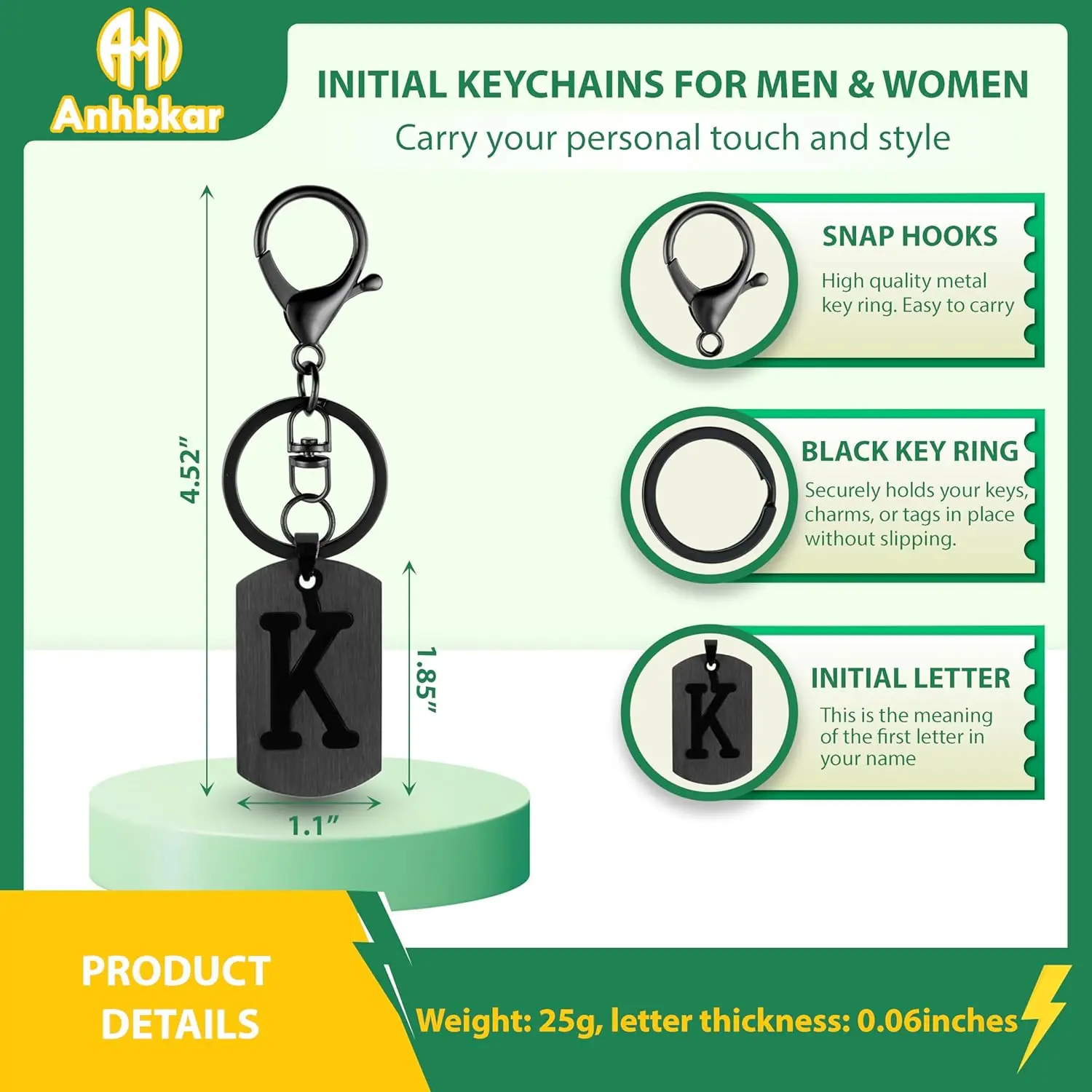 𝗧𝗛𝗢𝗨𝗚𝗛𝗧𝗙𝗨𝗟 𝗔𝗖𝗖𝗘𝗦𝗦𝗢𝗥𝗬 𝗙𝗢𝗥 𝗠𝗘𝐀𐀀𝗪𝗢𝗠𝗘𝗡: initial bag charm esigne to suit both men an women, the minimalist black finish pairs well with any outfit or style.Whether you're looking for a small personal item that feels custom or just a cool accessory, this keychain brings both function an fashion together.