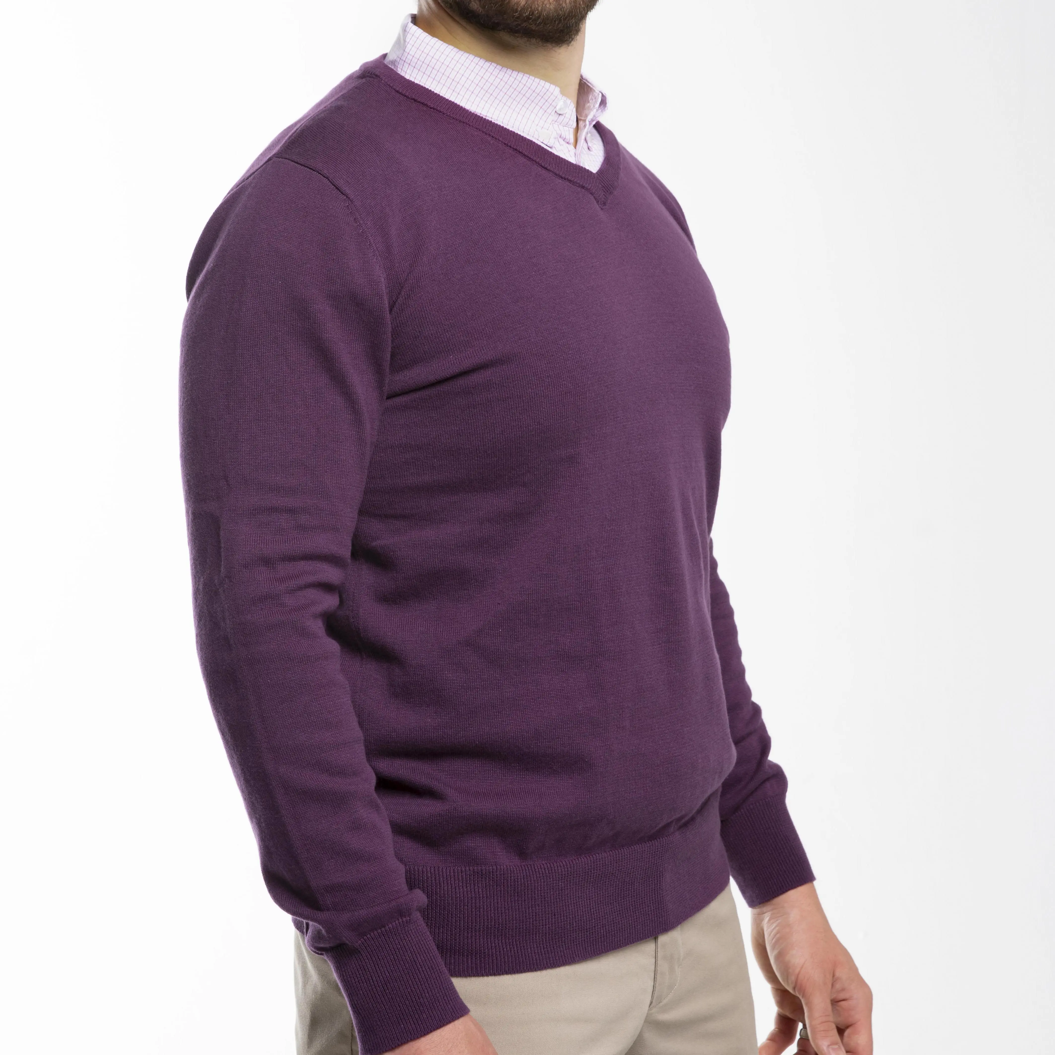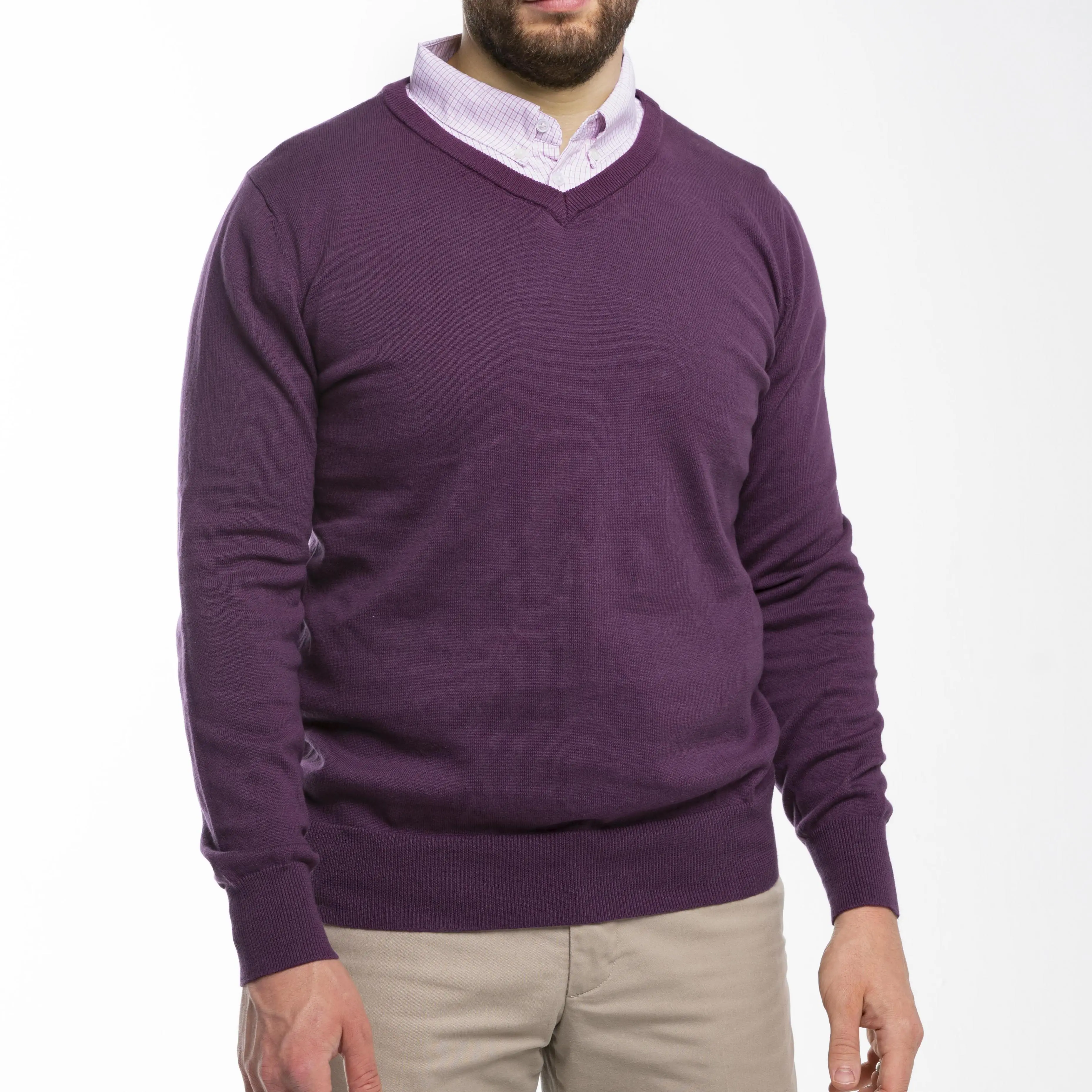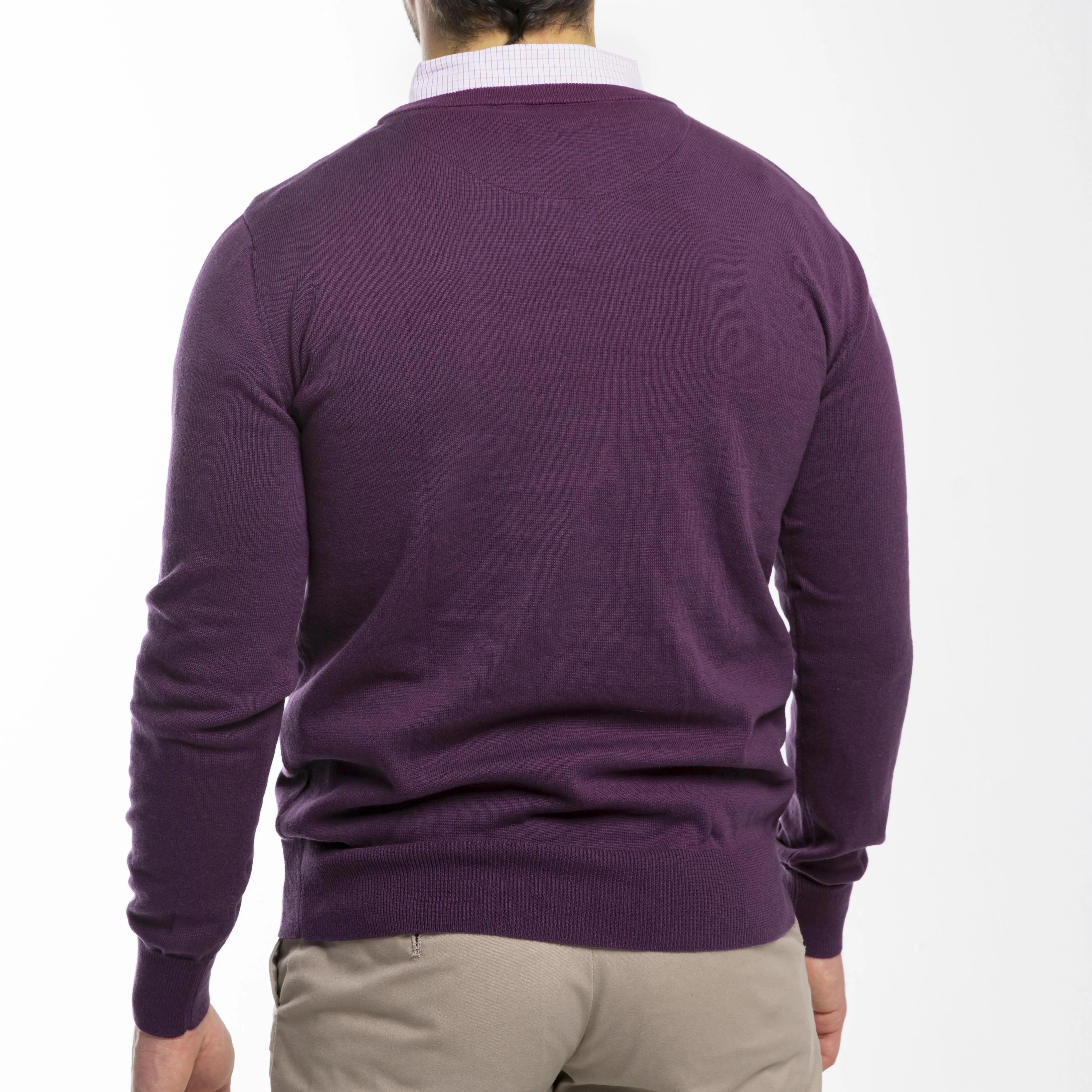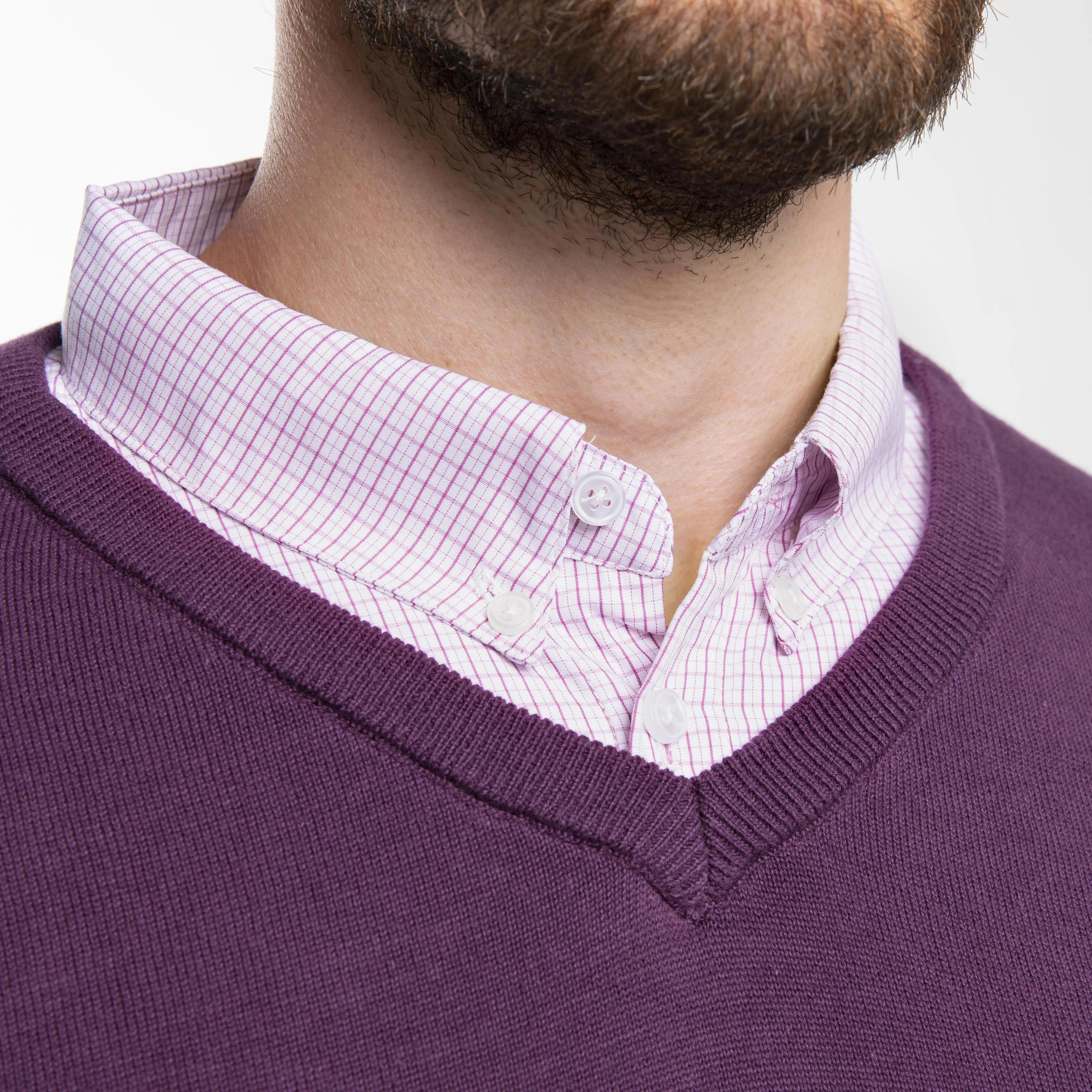 Our high quality, 100% cotton sweater in plum has the bonus of an attached plum check collar to give the appearance of a shirt and sweater combo with no one being the wiser.