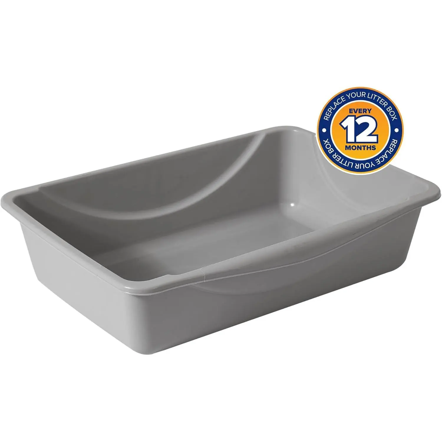 Petmate Basic Open Litter Pan, Gray, Small, 14L x 10.5W x 3.5H inches, Rimmed Sides for Easy Lifting, Made in USA, Eco-Friendly, Durable