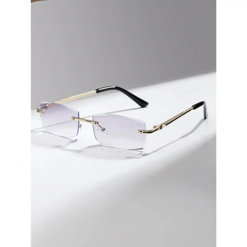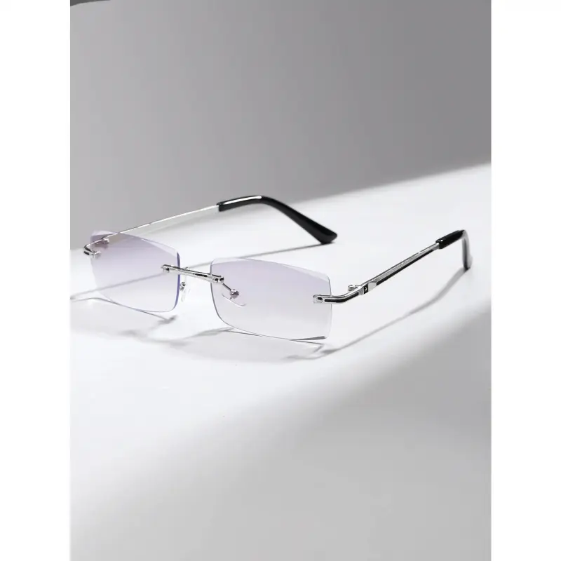 1-Pair Men’s Square Semi-Rimless Anti-Blue Light Glasses – Lightweight Simple Design, Ideal for Daily & Work Wear