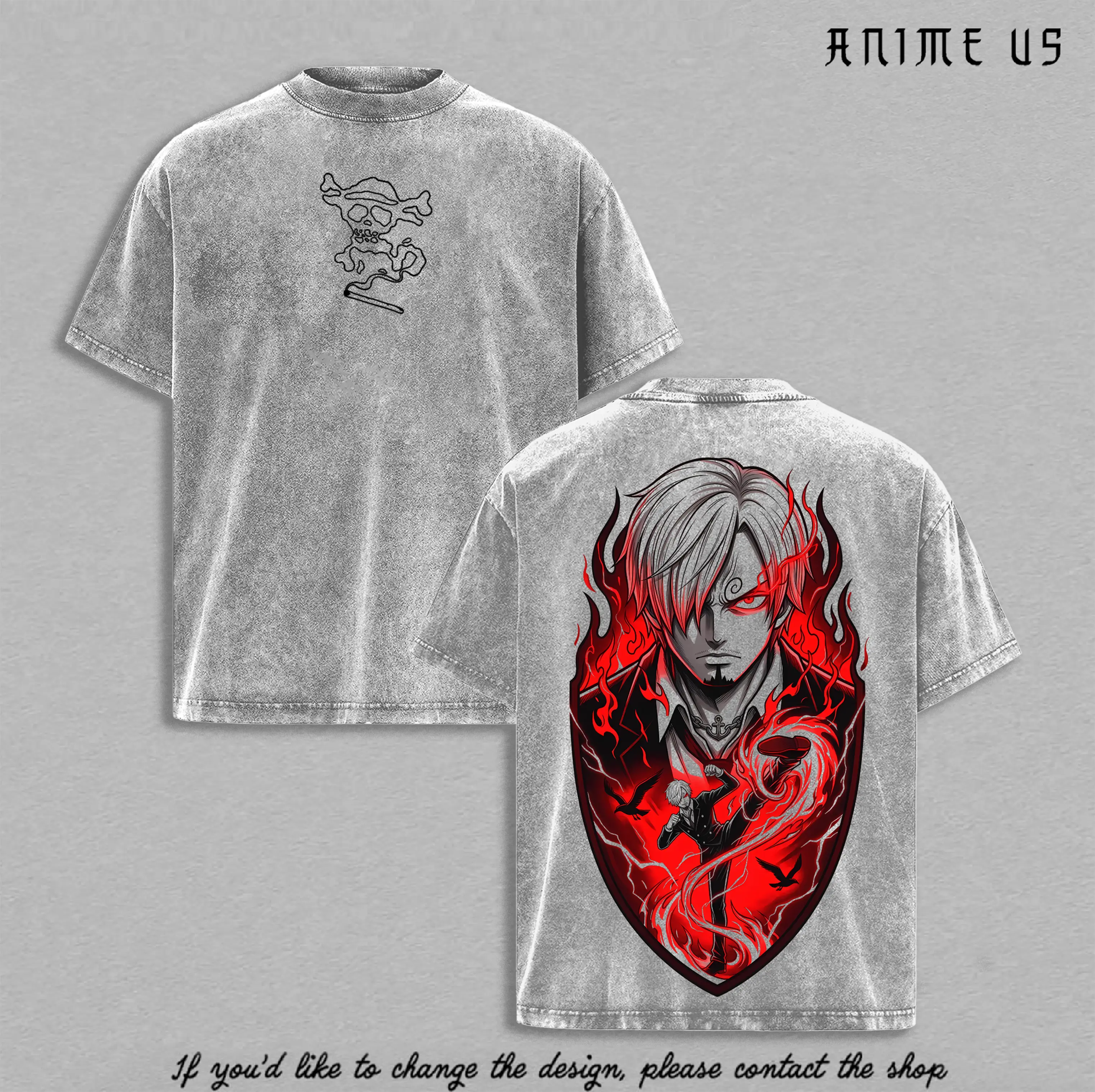 Sanji One Piece Shirt Vinsmoke Sanji Diable Jambe Anime Vintage Washed Oversized Graphic Tee Straw Hat Pirate Chef Anime Shirt