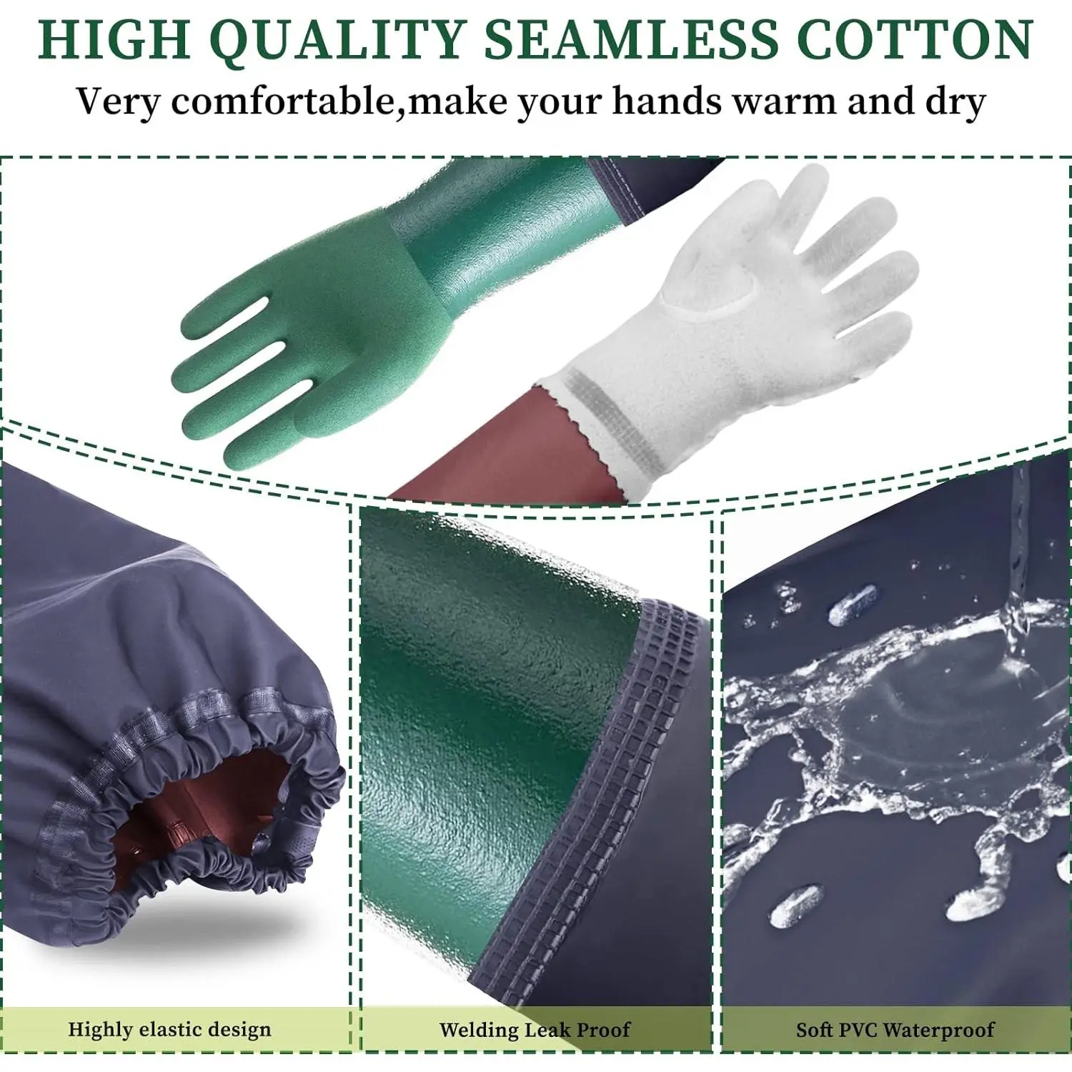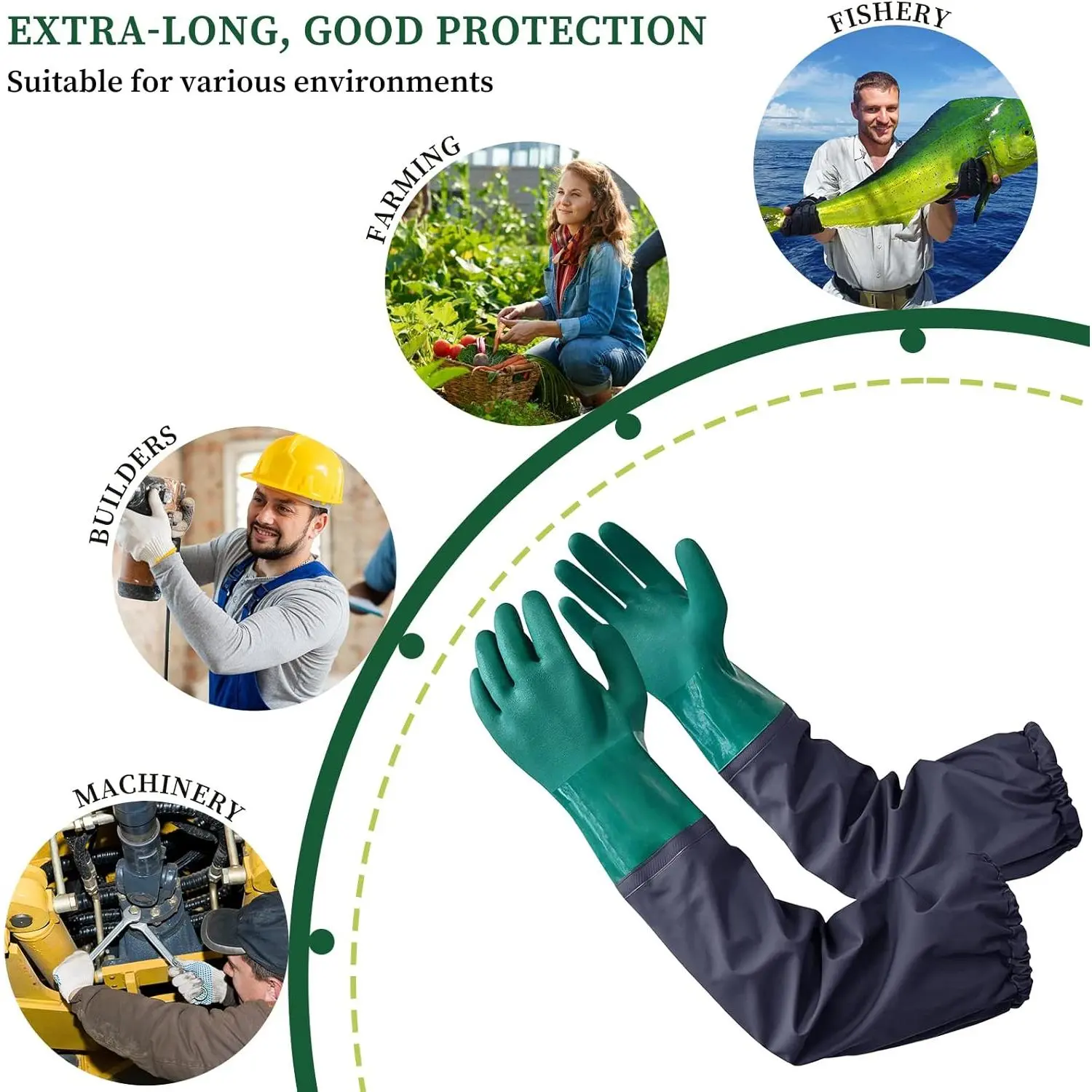 ·[WIDELY APPLICABLE]PVC long sleeve gloves are widely used in clothes washing, machine maintenance, aquarium, pond work, garden cleaning, yard operation, auto industry, agriculture, farm, gardening, printing and dyeing industry, etc; Great for cleaning fish ponds, sinks, gutters, range hoods, bathrooms, swimming pools and more