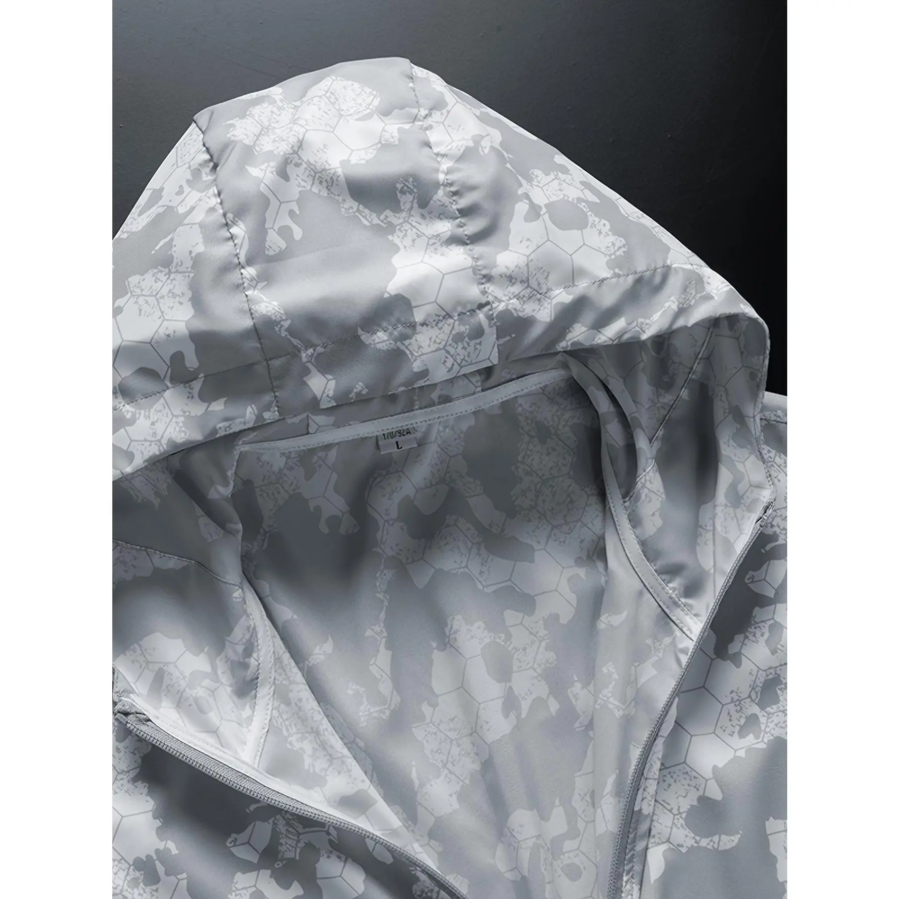 Men's camouflage pattern ultra-thin jacket, suitable for outdoor leisure activities, windproof and cool, with sun protection function, ideal for casual sports wear in spring and summer