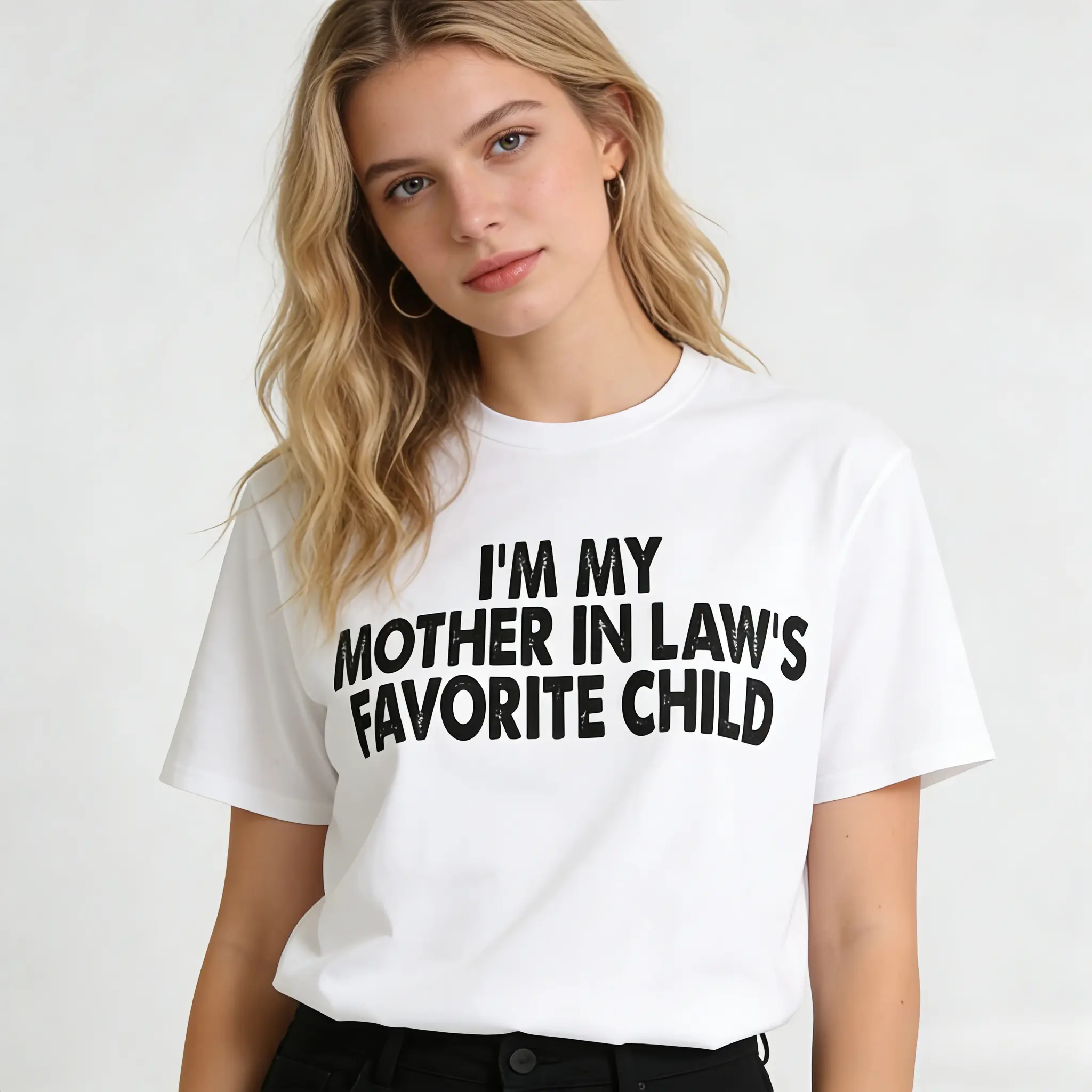 Made for people who want an easy, casual tee with a funny family message. It helps you add a lighthearted vibe to everyday outfits and makes a great conversation starter at family gatherings. From QuipWeave studio, this unisex short-sleeve crewneck T-shirt features the "I’m My Mother-In-Law’s Favorite Child" funny parent slogan (see listing images for the exact design). Easy to pair with jeans, leggings, or shorts for daily wear, errands, weekends, and casual meetups-and since it’s a unisex style, you can grab one for him at checkout too. A fun gift for couples, husbands, boyfriends, brothers, or anyone who loves witty graphic tees for Mother’s Day, birthdays, or family get-togethers. Note: Please refer to the listing for sizing and exact print details; graphic placement and colors may vary slightly by screen and production.