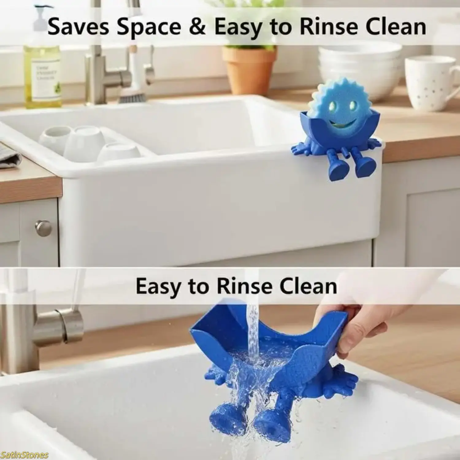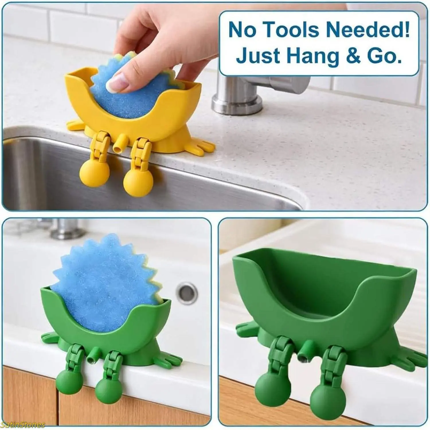 1-Pack Fun Kitchen Sink Sponge Holder — Hanging Design with Drainage Holes, Compatible with Scrub Daddy Sponges, Cute 3D-Printed Organizer