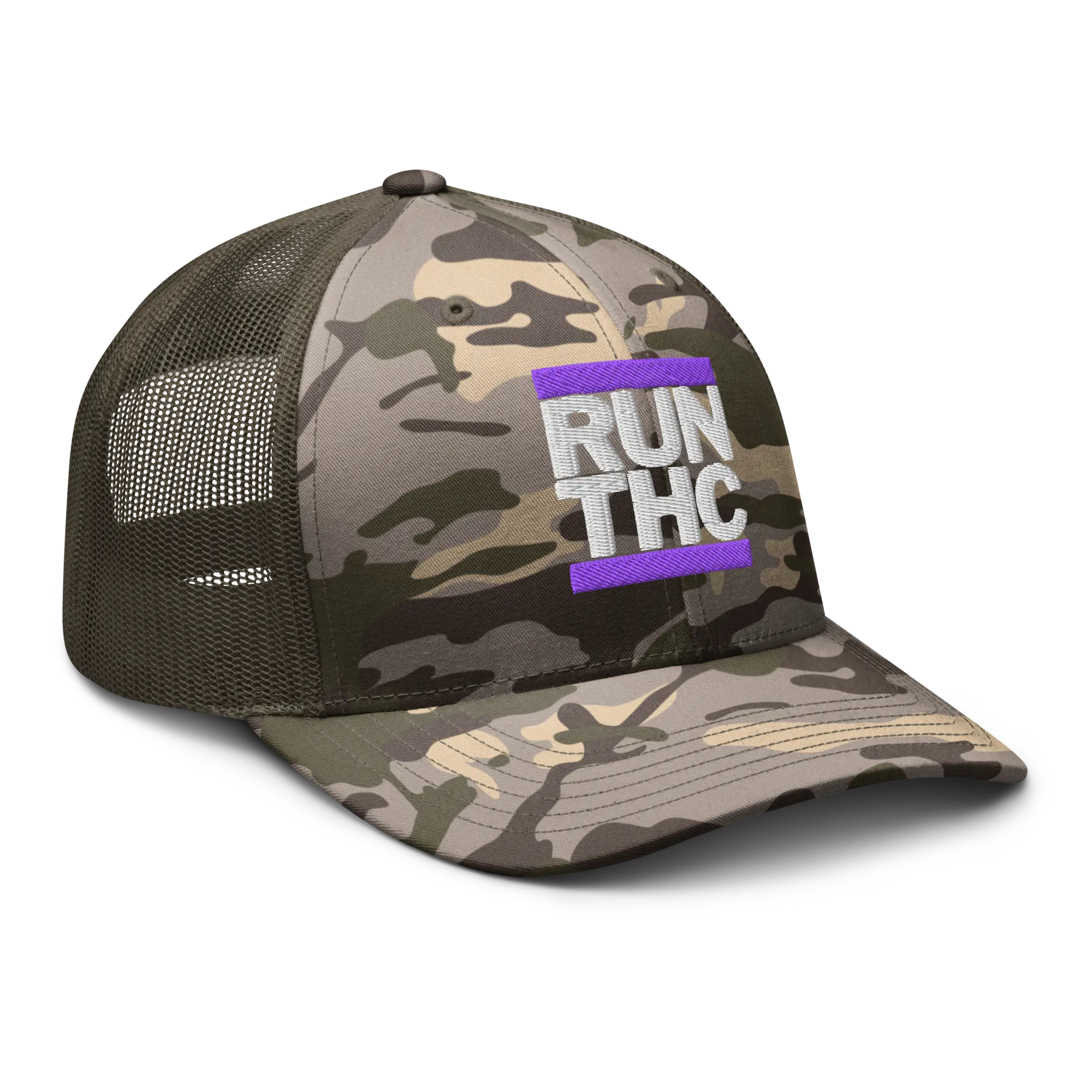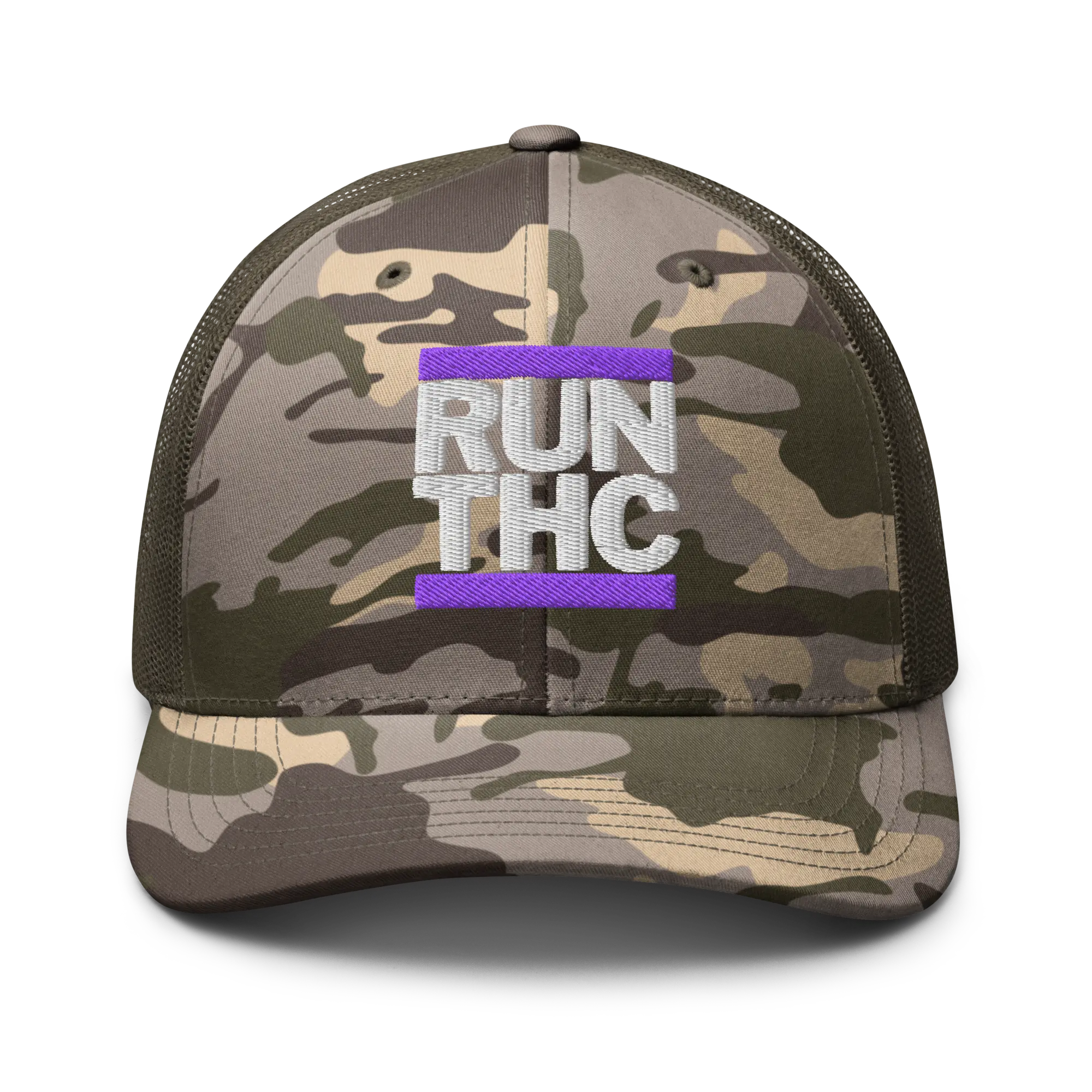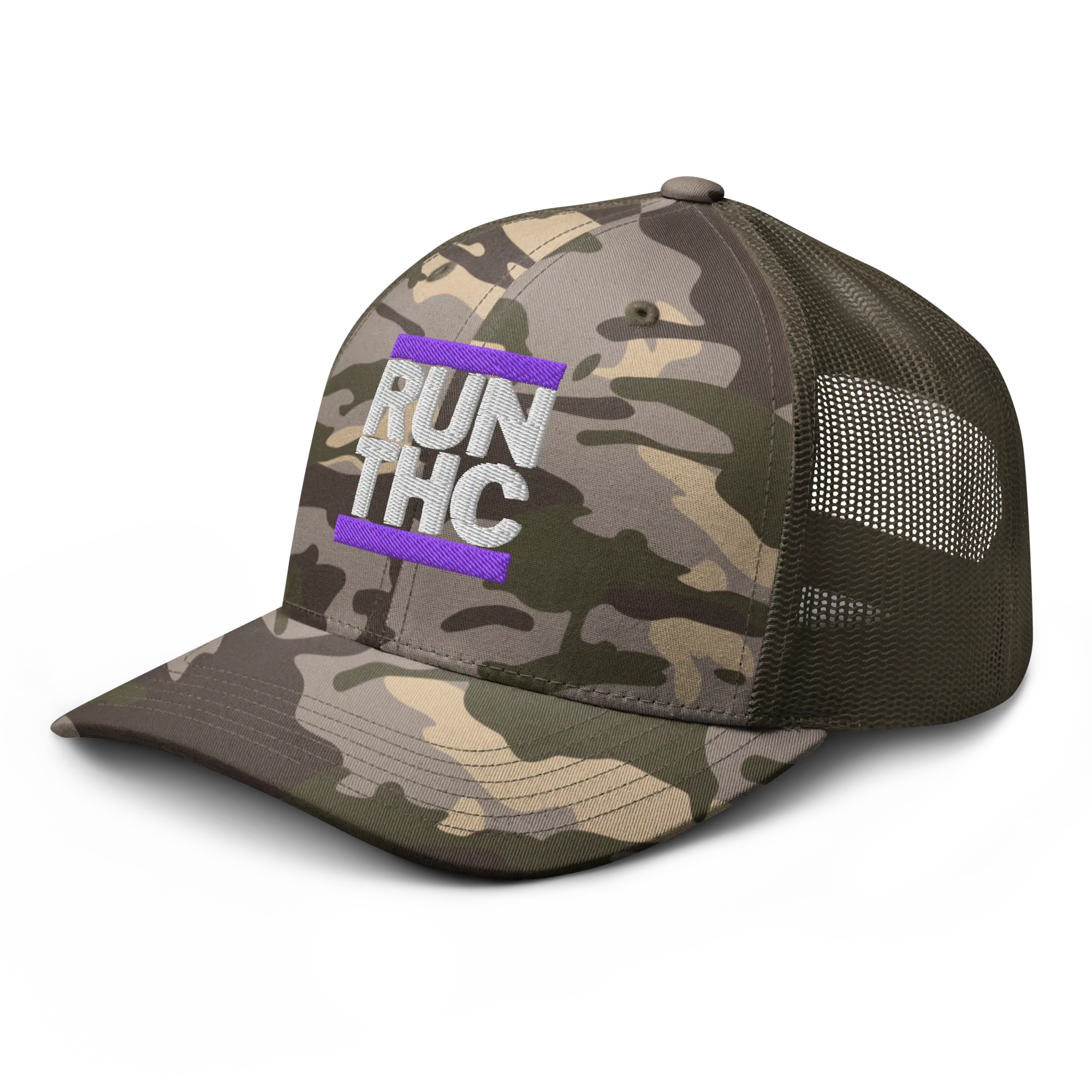 RUN THC | CAMO | Trucker Hat | Embroidered Purple Logo
