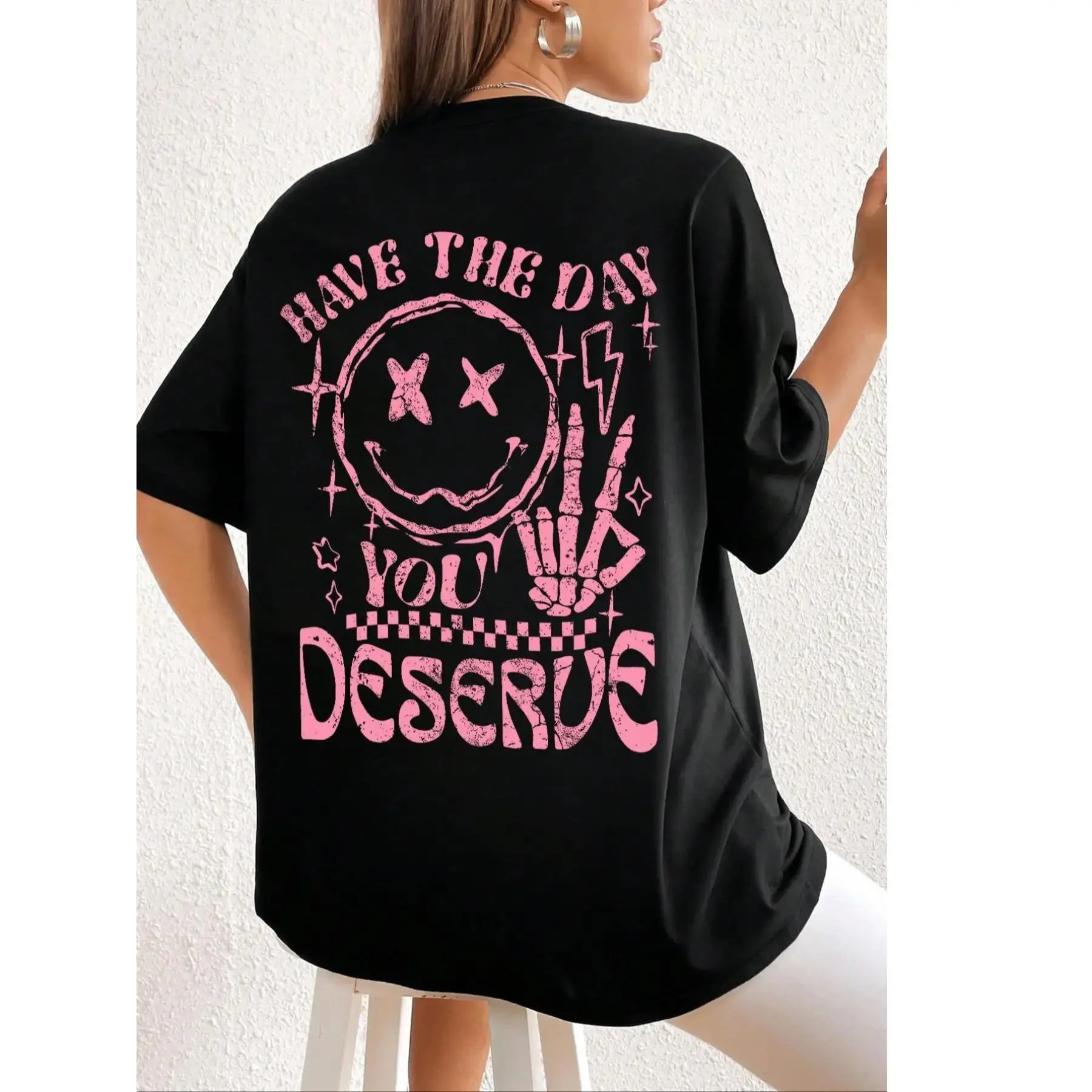 Featuring a fun cartoon and letter print combination, this tee brings a playful and youthful vibe that stands out effortlessly.The graphic adds personality and a lighthearted feel, making it perfect for expressing mood and style in a casual way.Ideal for daily wear, holidays, vacations, or outdoor activities, it pairs easily with your favorite pieces to create a relaxed, trendy look that feels both fun and easygoing.