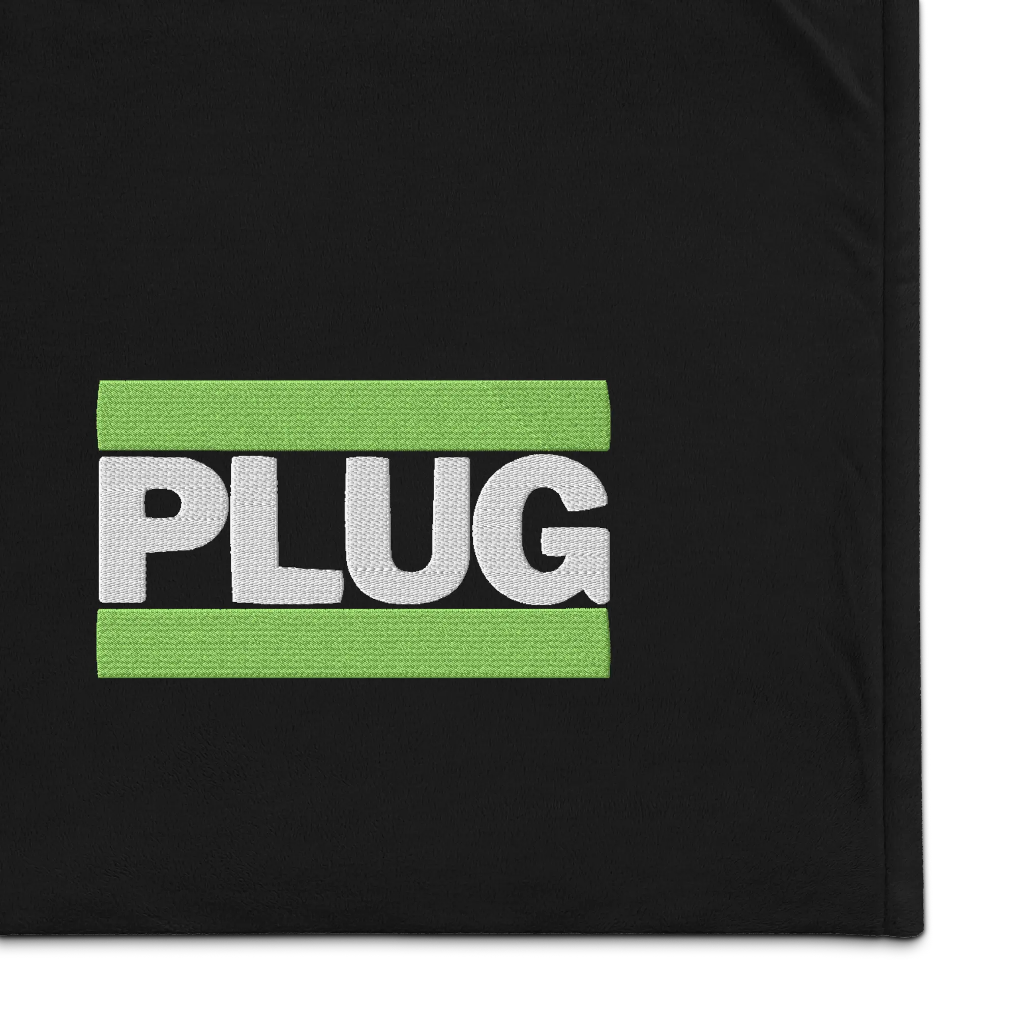 This isn’t just a blanket—it’s a vibe. The PLUG Premium Sherpa Blanket is ultra-soft and perfect for when you’re couch-locked or setting up your chill zone. With the green embroidered logo, it’s your plug for premium cozy vibes.