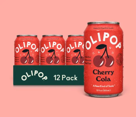 OLIPOP Cherry Cola Prebiotic Soda – Low Sugar Cherry Cola Drink (Pack of 12)