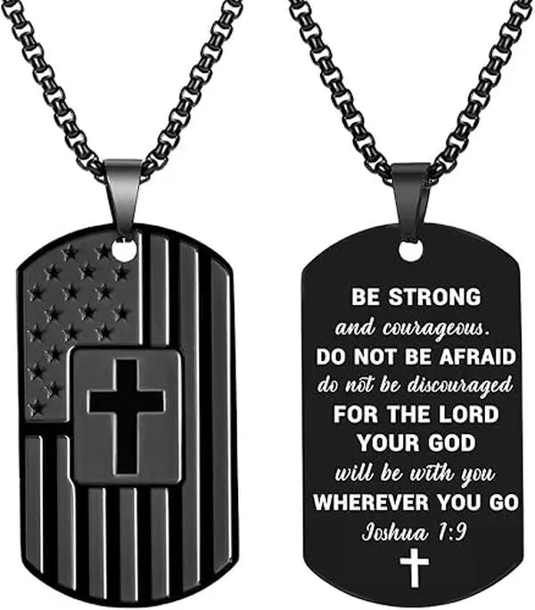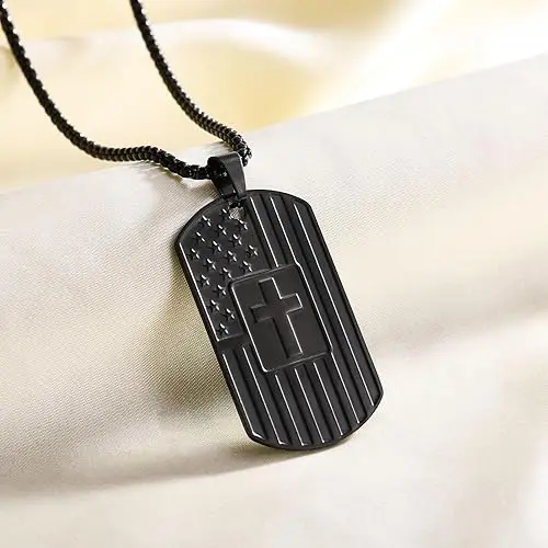 ·American Flag Cross Necklace - This dog tag necklace symbolizes a combination of patriotism and faith. comes with gift box, perfect for gifting. Every time he wears this necklace, he will think of you and will cherish this heartfelt gift for years to come.