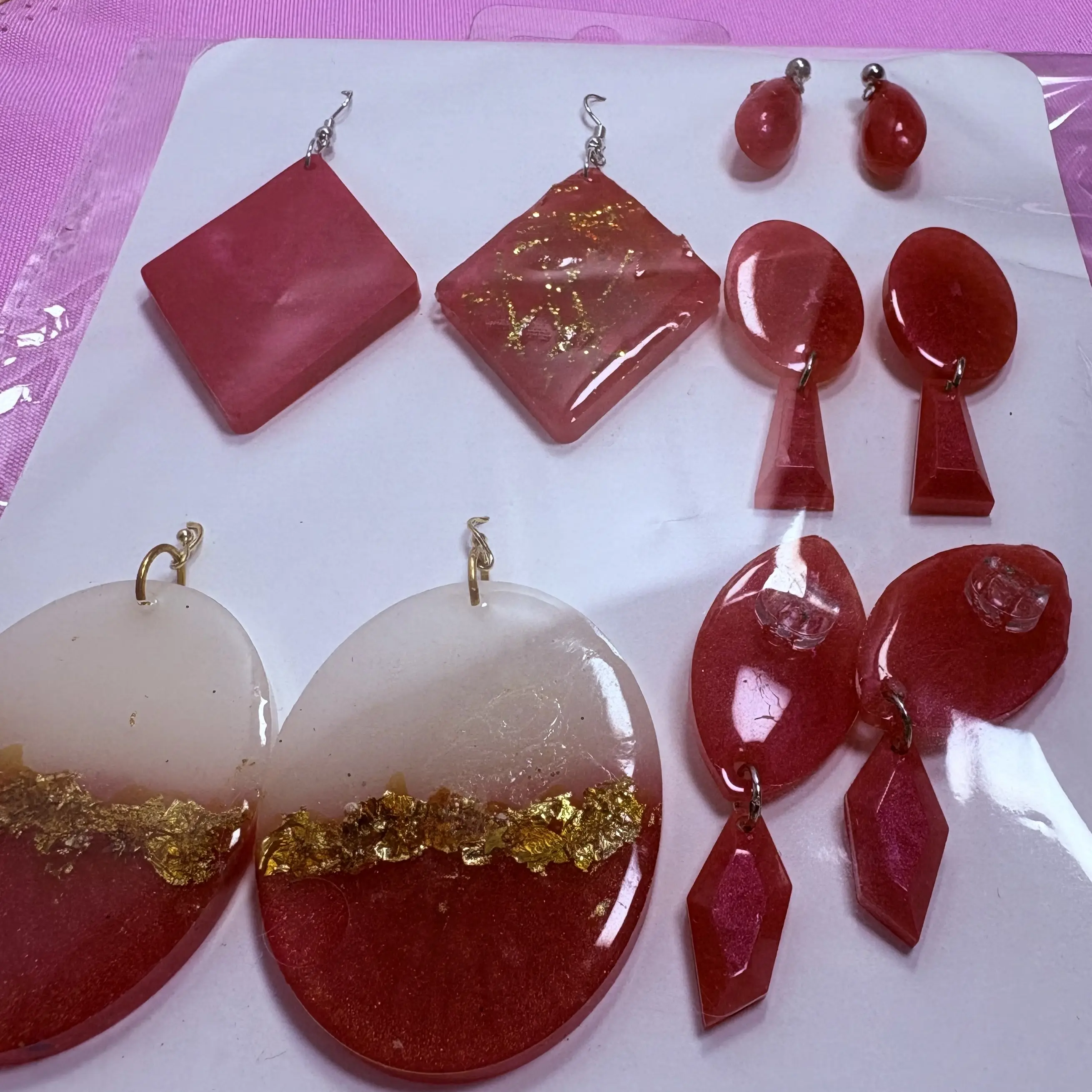 At La AbiGaleria, every pair a earrings is crafted with care and creativity. Each design starts by hand, carefully selection colors, textures, and shapes that feel vibrant and unique. From mixing materials to pouring the resin, every step is done by hand, so each pair is truly a one-of-a-kind tiny wearable pieces of art.