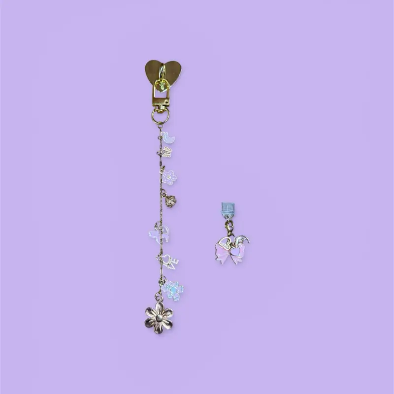 Elevate your everyday essentials with a touch of dreamy nostalgia. This intricately designed charm chain features a curated collection of gold-toned hardware and soft pink enamel motifs. From delicate butterflies and blooming florals to celestial moons and classic bows, every detail is crafted to add a feminine, "soft-girl" aesthetic to your favorite items.