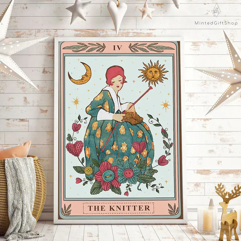 The Knitter Tarot Card Poster/ Tarot Knitting Poster/Knitting Art Wall Decor/ Yarn Tarot Home Decor.Hippie Gift.Office Gift Decorative Plaque Print Tin Lightweight Farmhouse Door Sign,Perfect gift for Mother’s Day