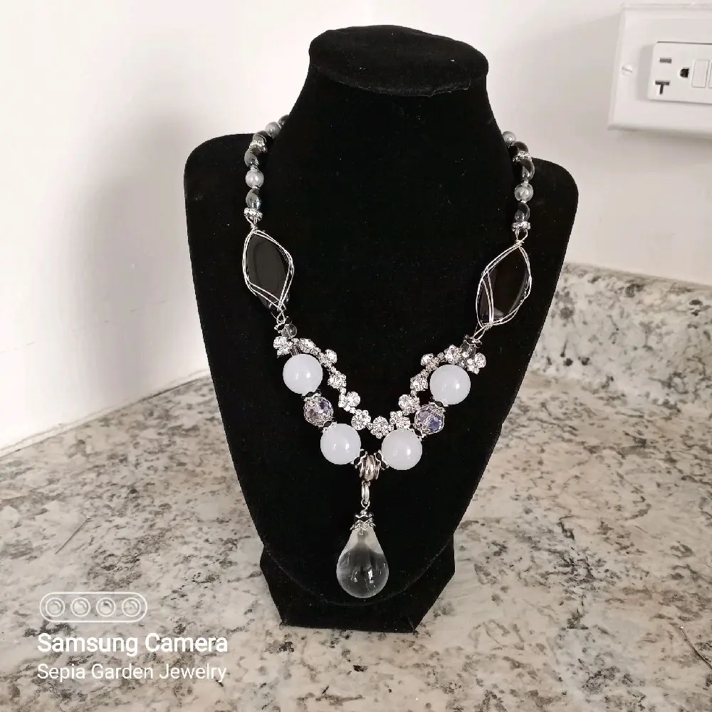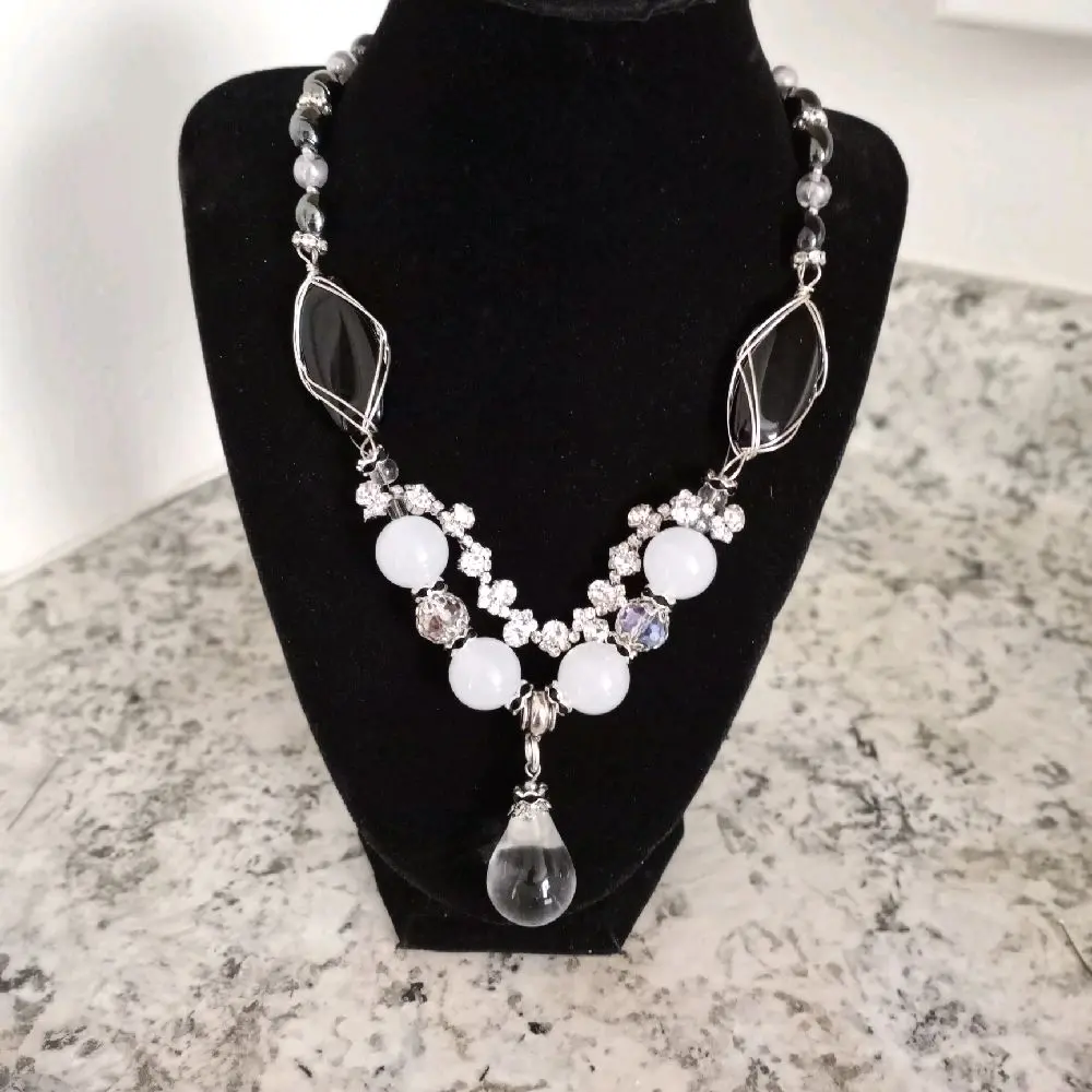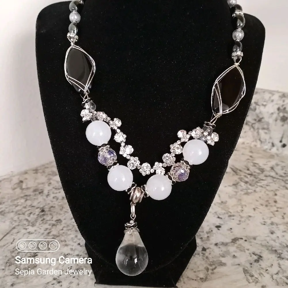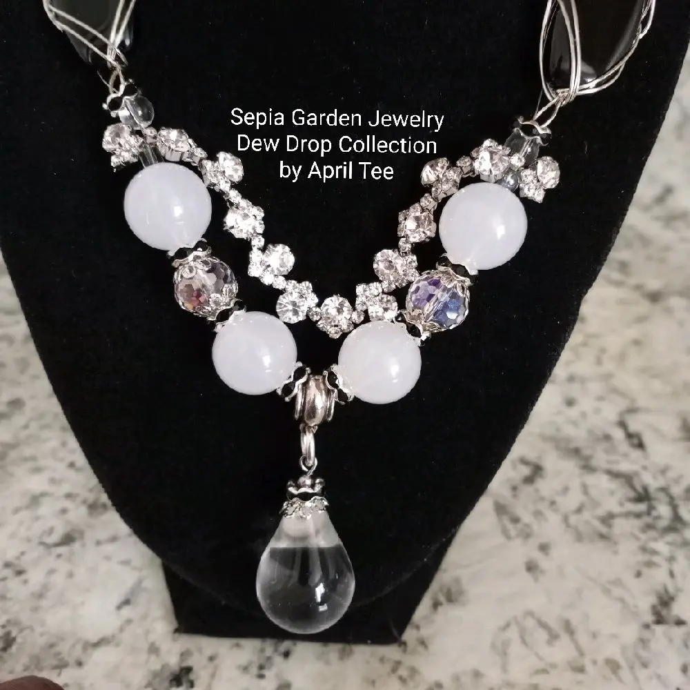 Elegant Necklace and Dew Drop Pendant focal. Hemitite, Rhinestone Accents Dew Drop Collection Handmade by April Tee