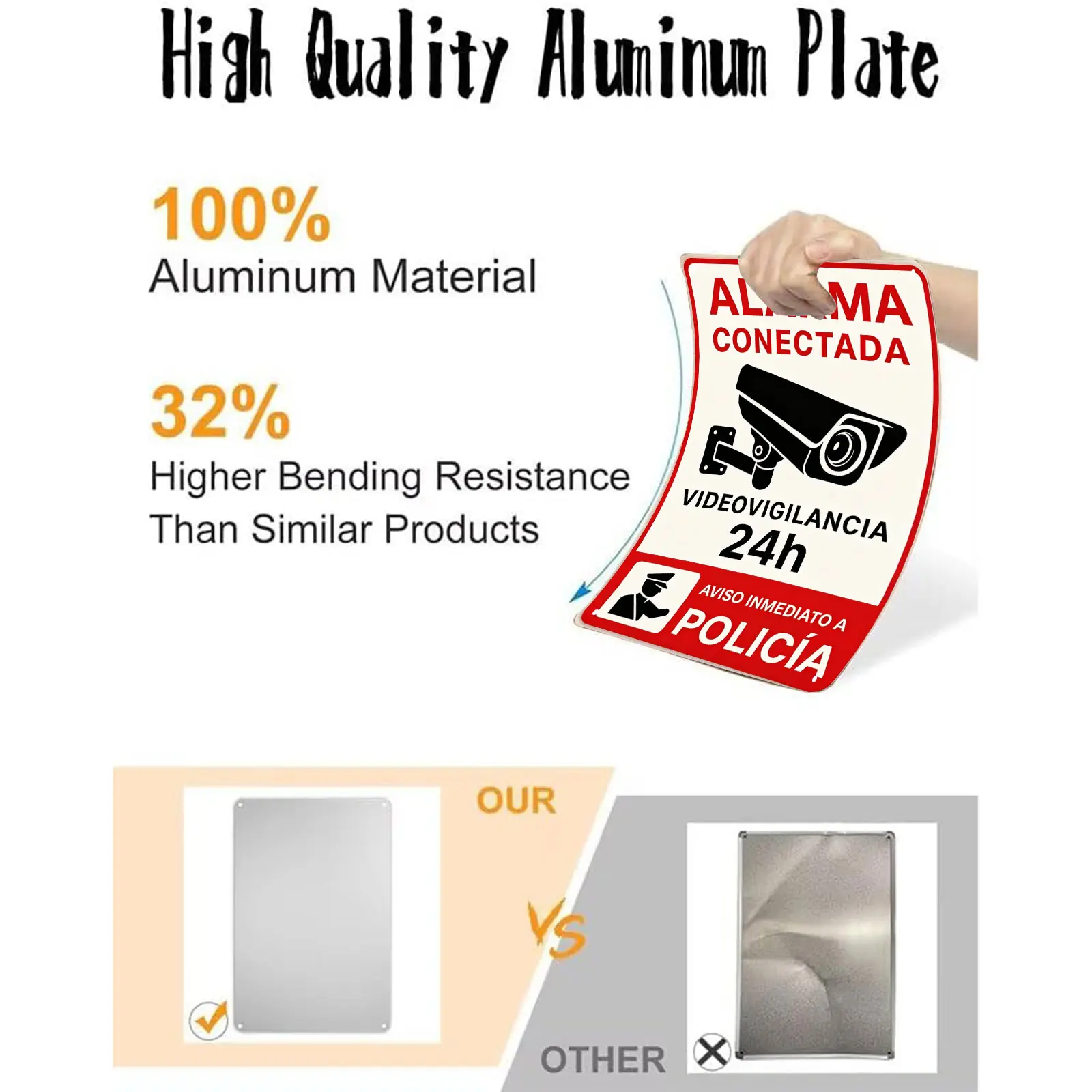 "Alarm Activated 24H Video Surveillance" 8x12 Inch Aluminum Metal Sign - Spanish Security Wall Decor for Home, Yard, and Gate - Retro Tin Poster with Camera & Police Alert Design - Durable, Weatherproof, and Easy to Hang - Ideal for Property Protection