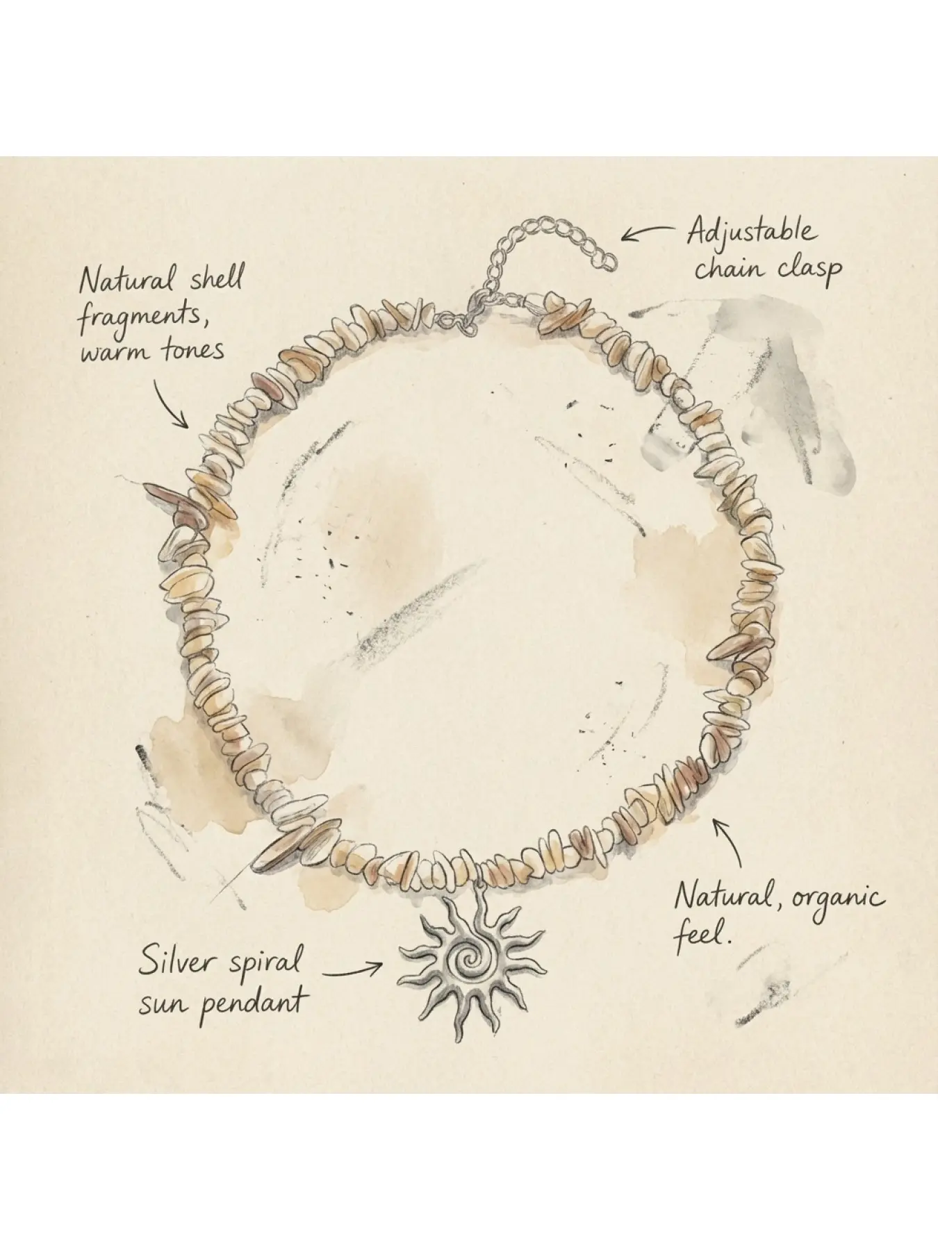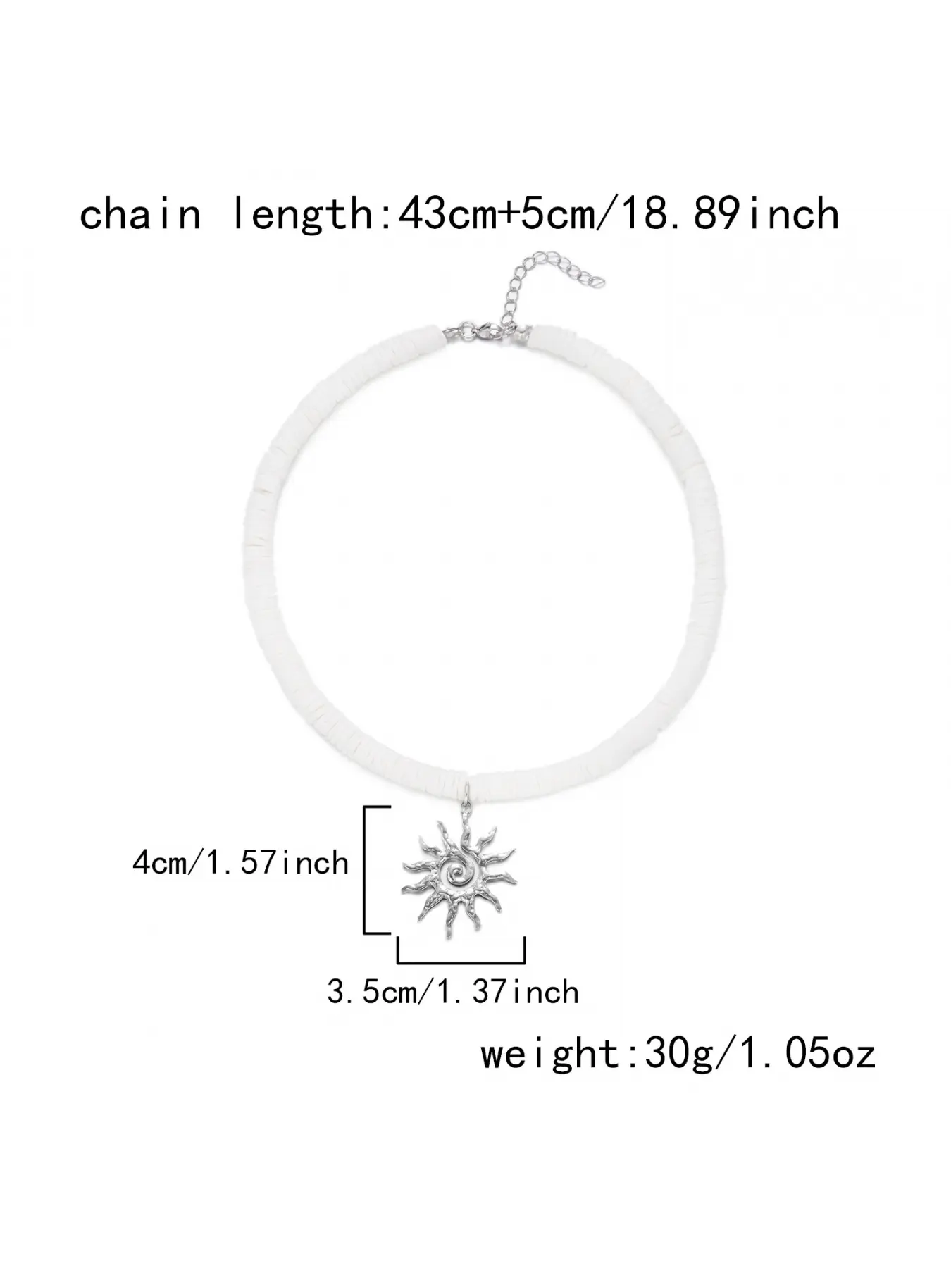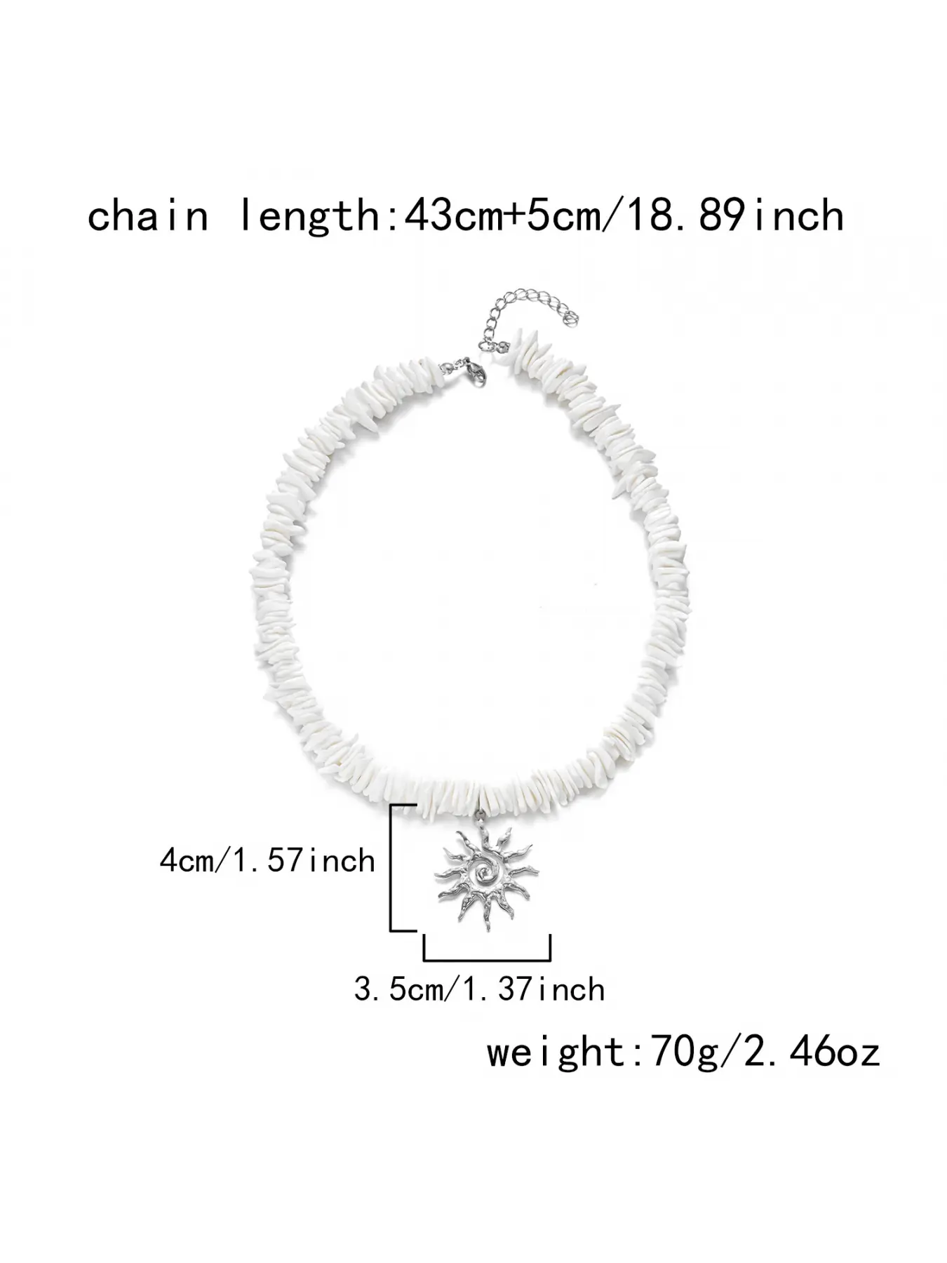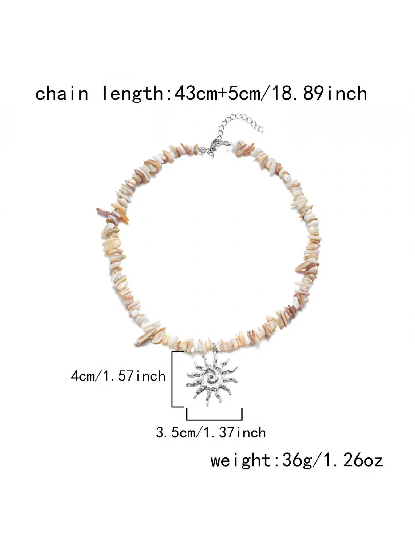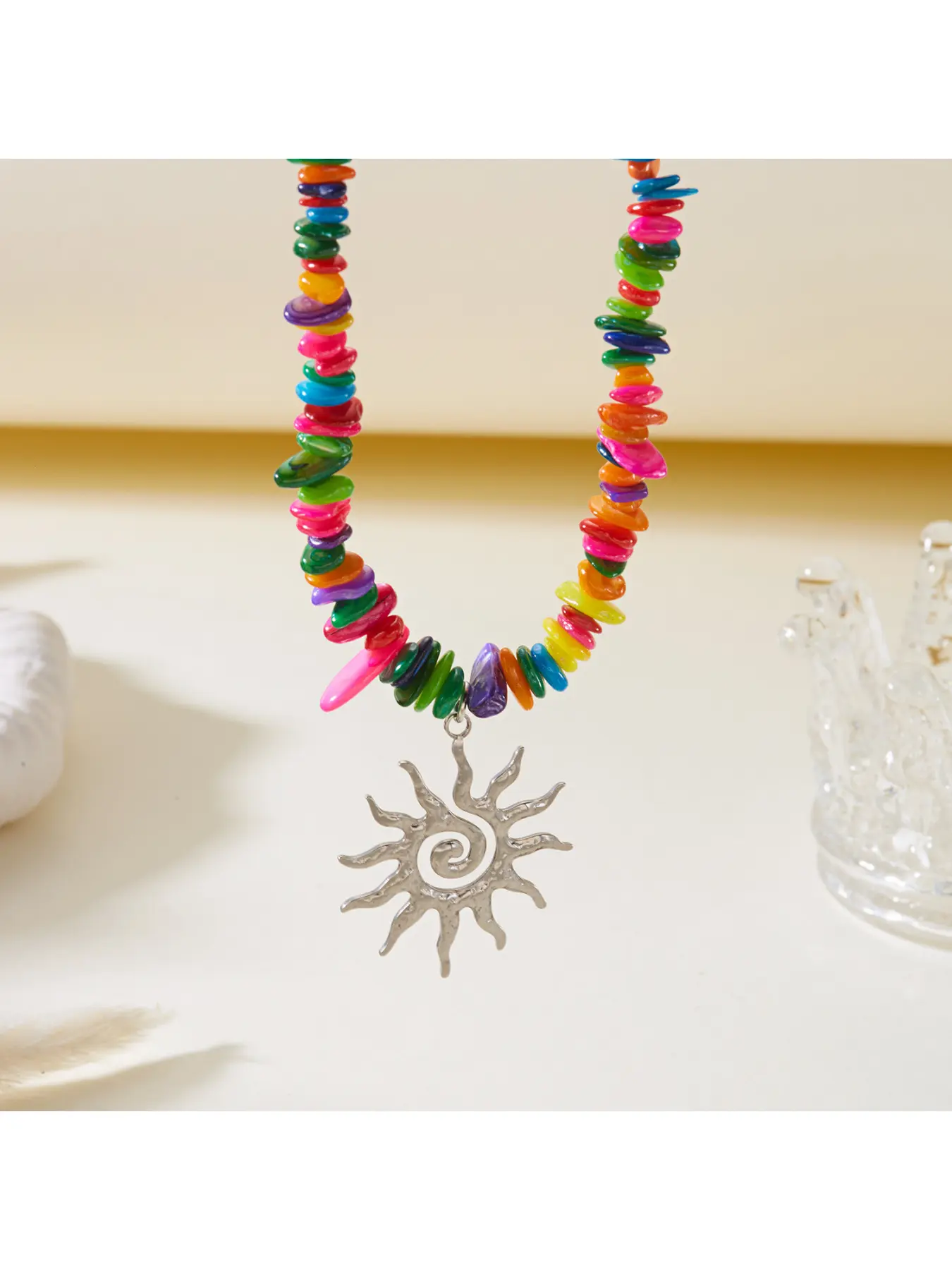 Bohemian Vacation Style Sun Flame Natural Stone Necklace, French Vintage Beaded Pendant Chain, Unique Jewelry Accessory