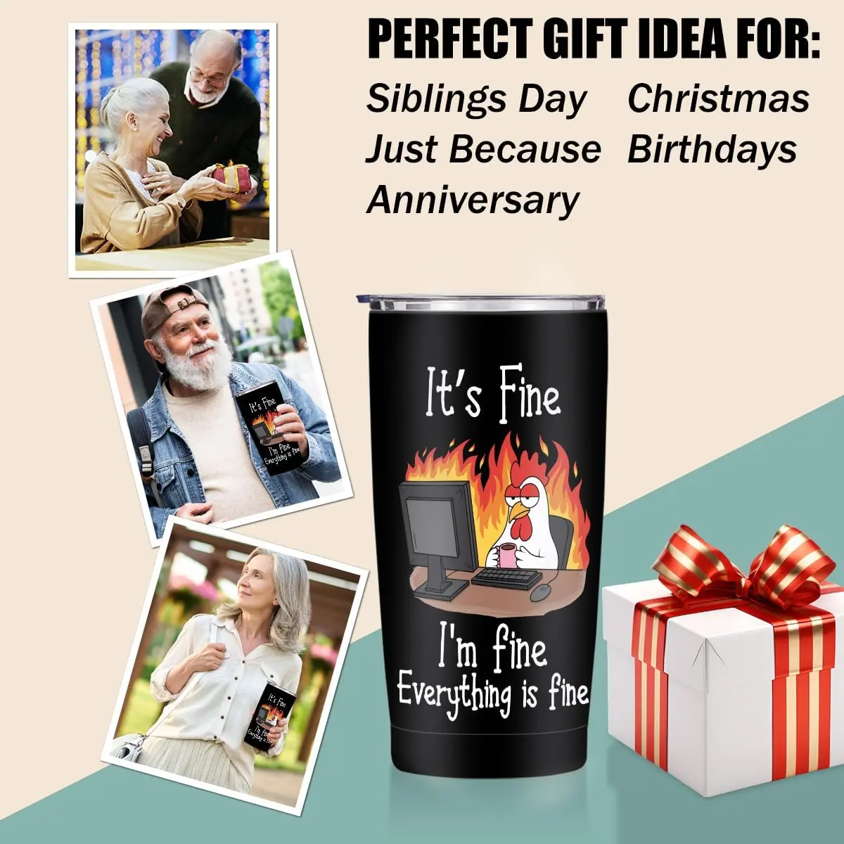 Funny Birthday Gifts for Women Men 20 oz Tumbler, Office Gag Gift Stainless Steel Insulated Water Bottle, Chicken Themed Insulated Travel Coffee Mugs, Funny Gifts for Coworkers Boss Women