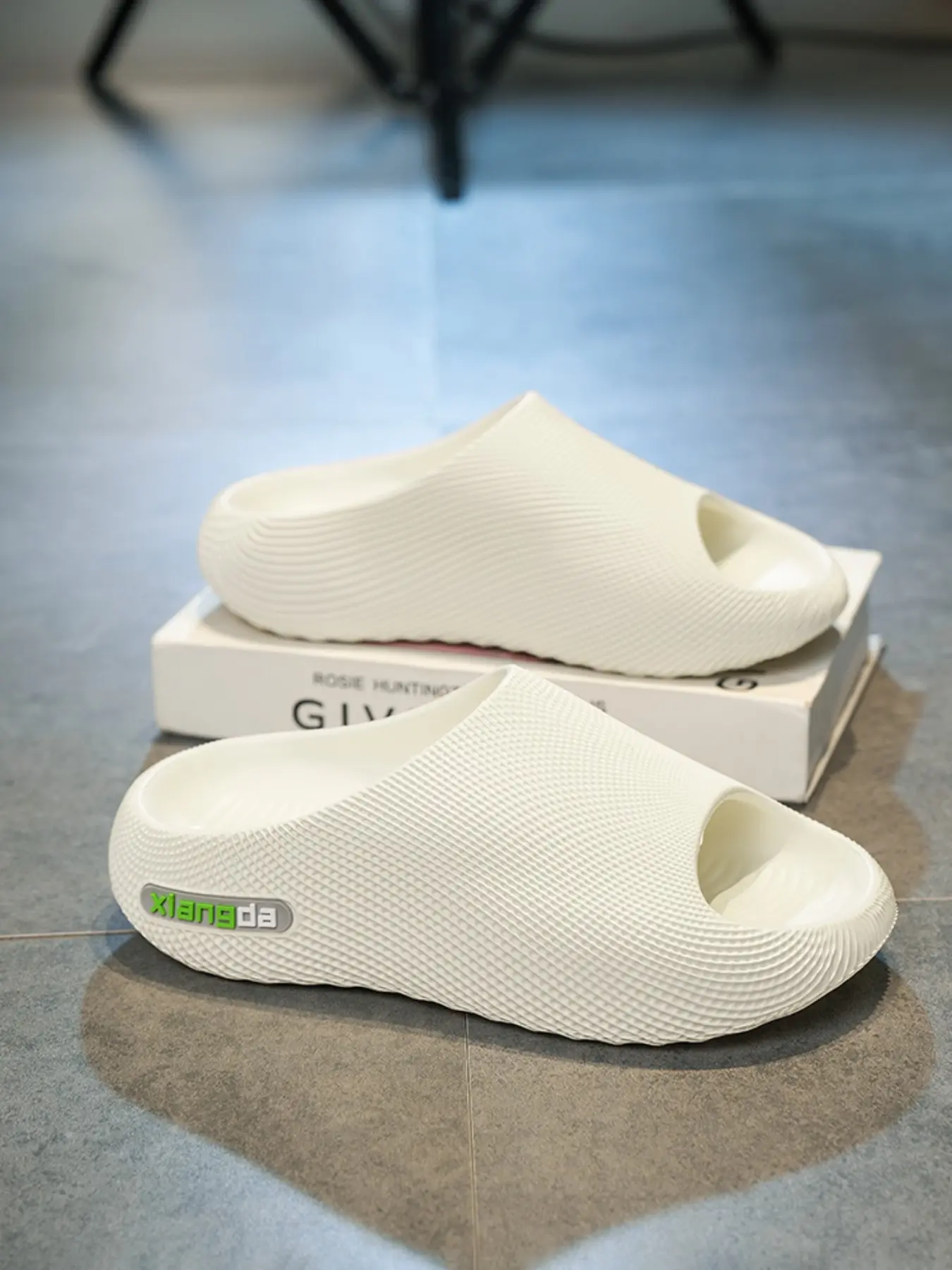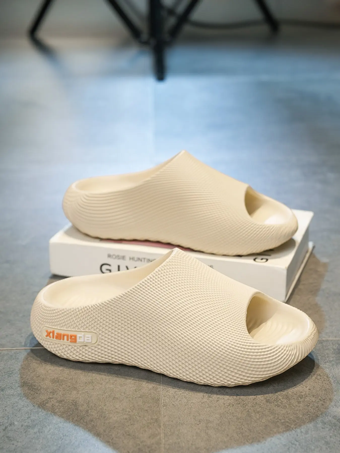 Trendy Thick Sole Women's Slippers, Comfortable Loose Fit, Home and Beach Use, Casual Patchwork Design, PU Leather, Eva Sole