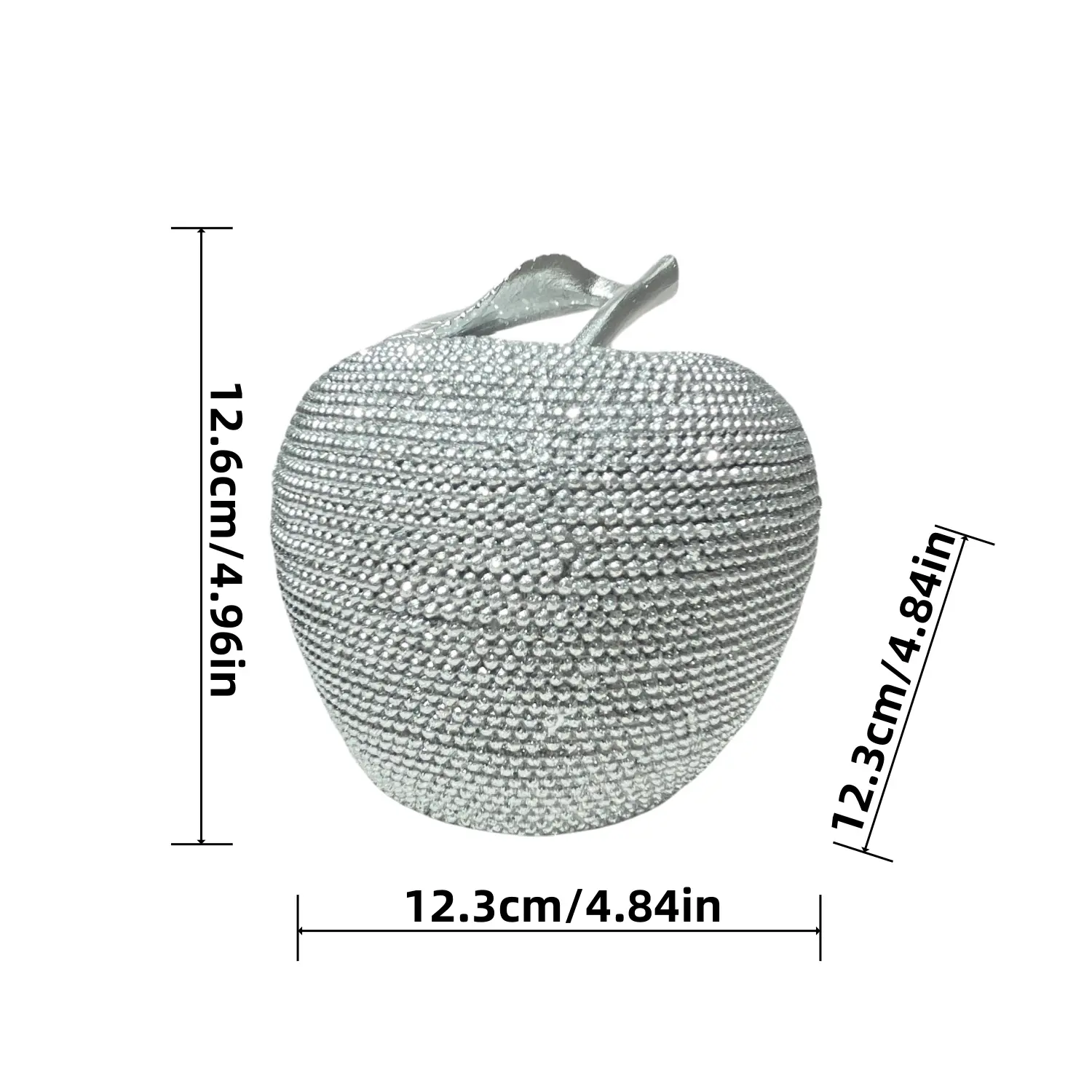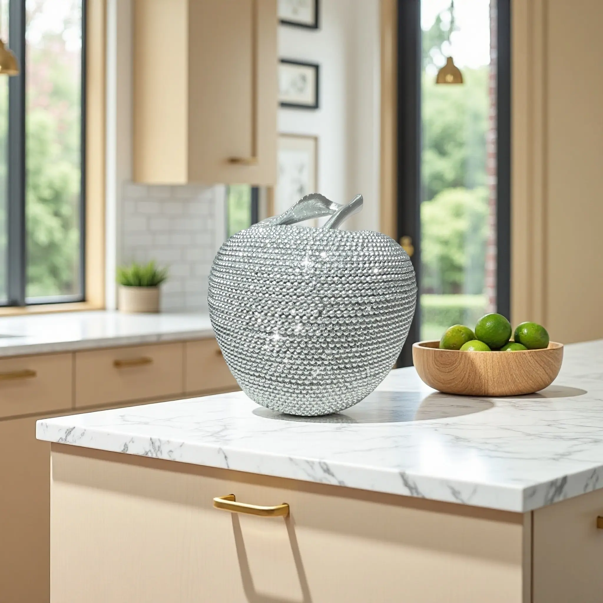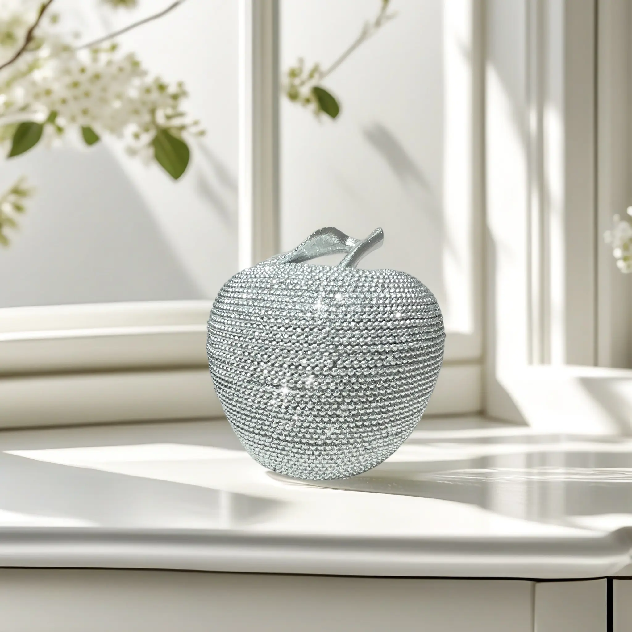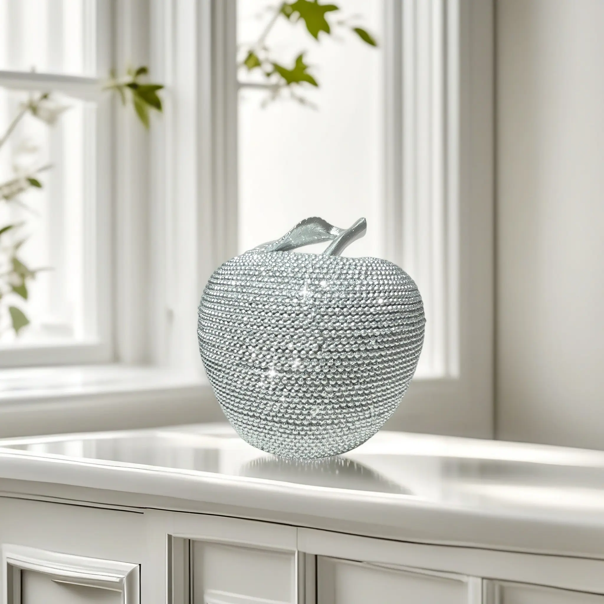 Luxury Silver Beaded Apple Decor | Bling Beaded Fruit Statue for Glam Home Office & Wedding Tabletop