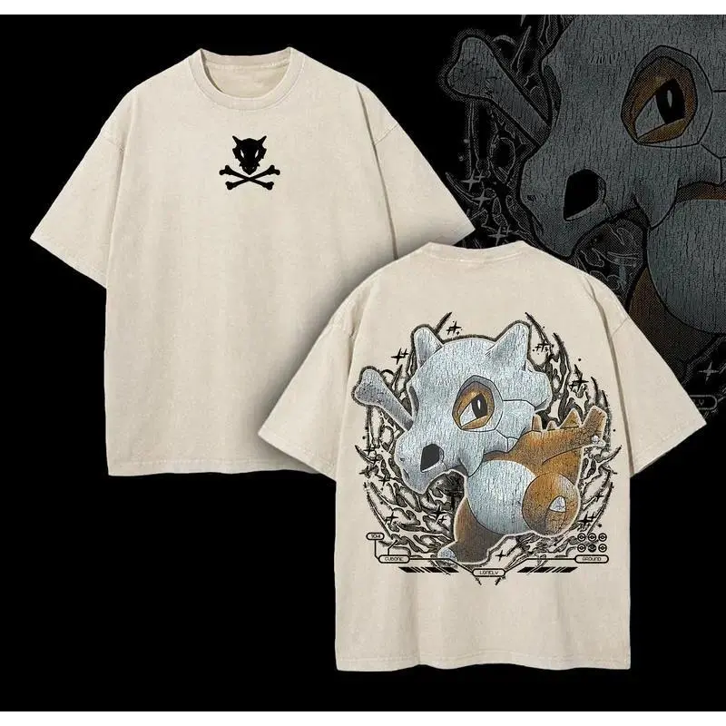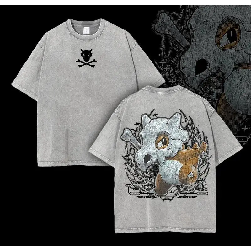 Pocket Monsters "Cubone" Vintage Unisex Oversize Anime Manga Acid Washed Heavyweight Cotton T-shirt for Fans
