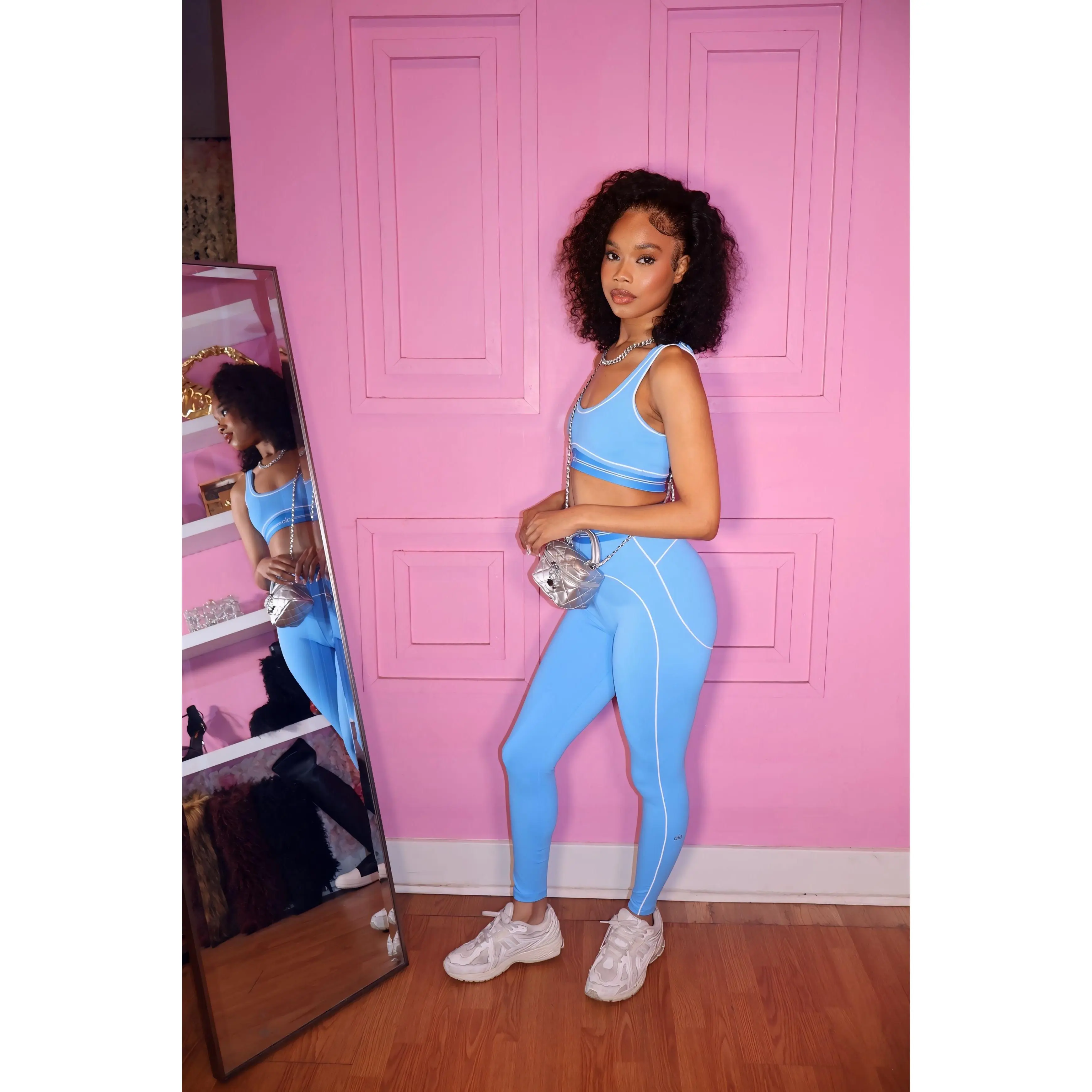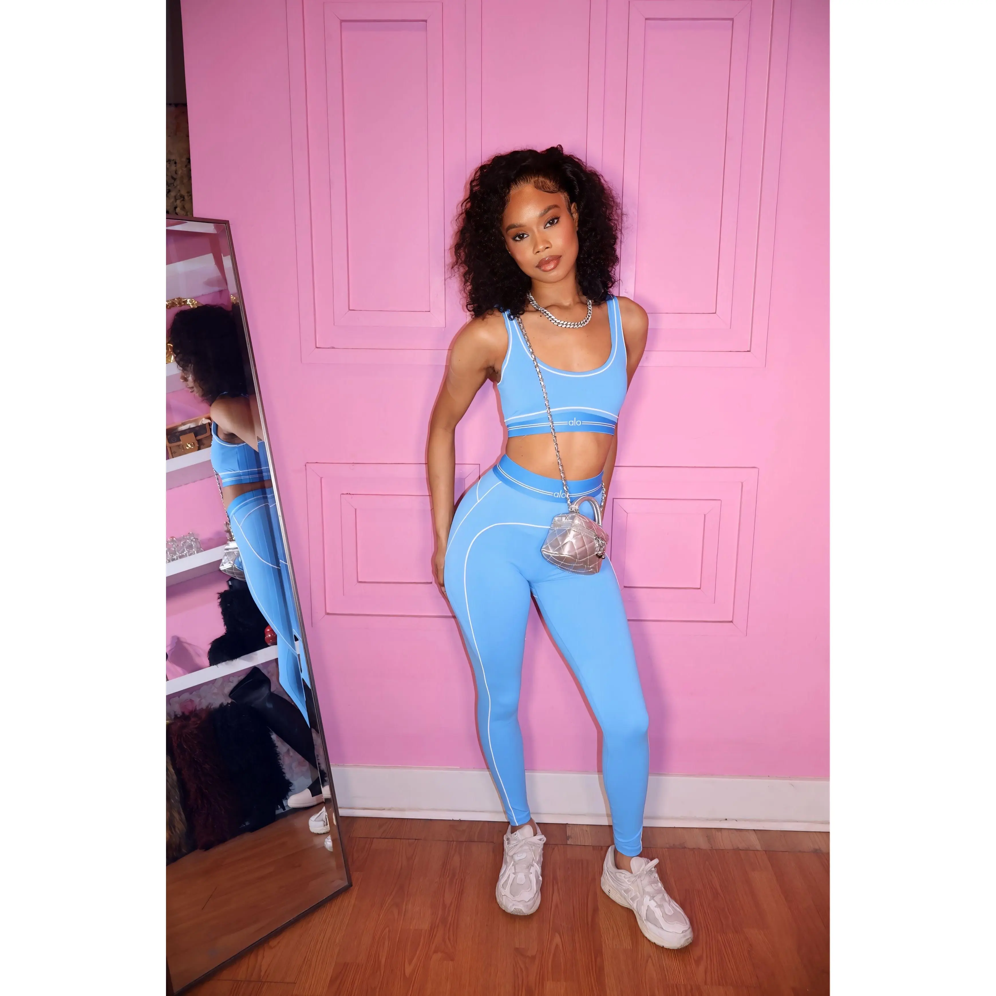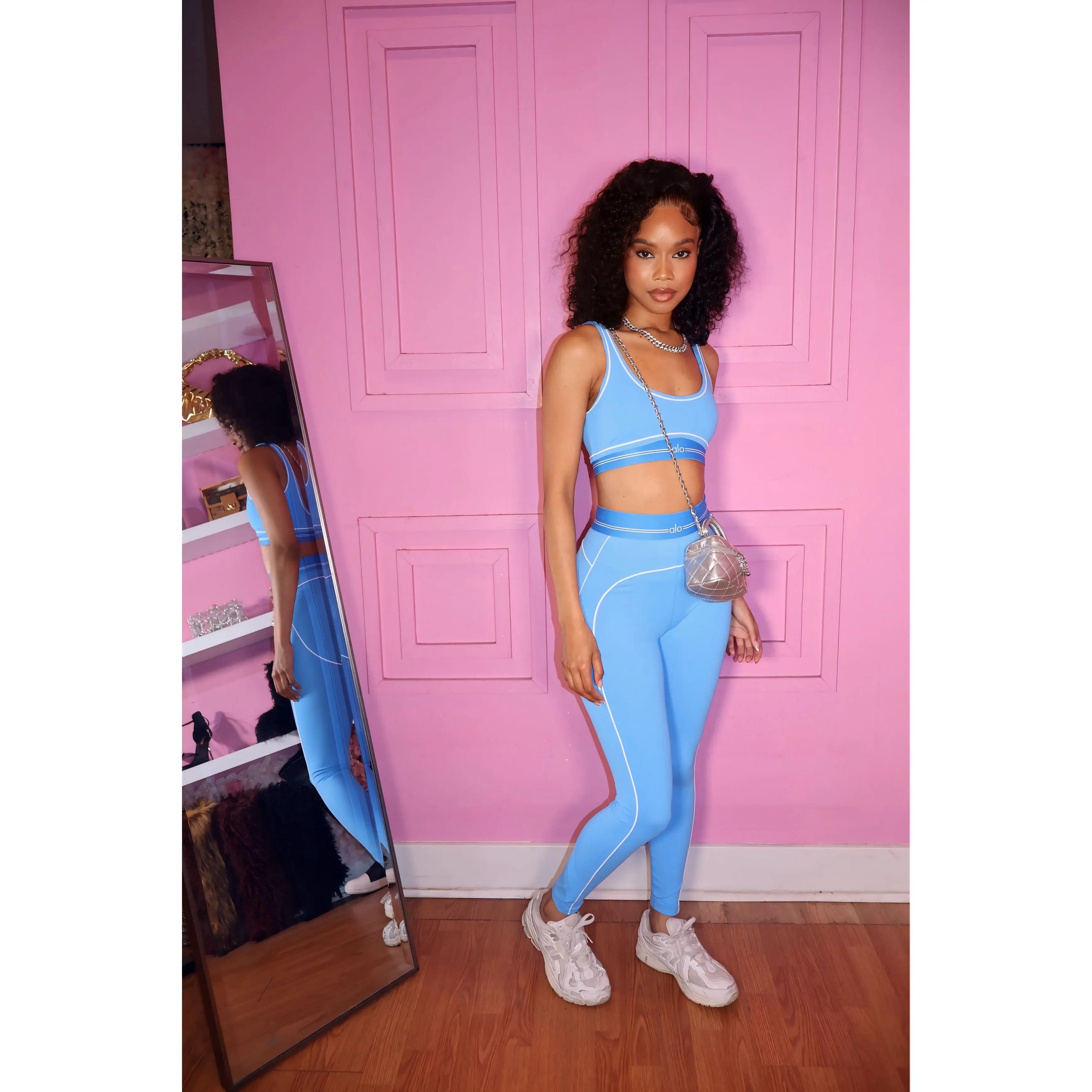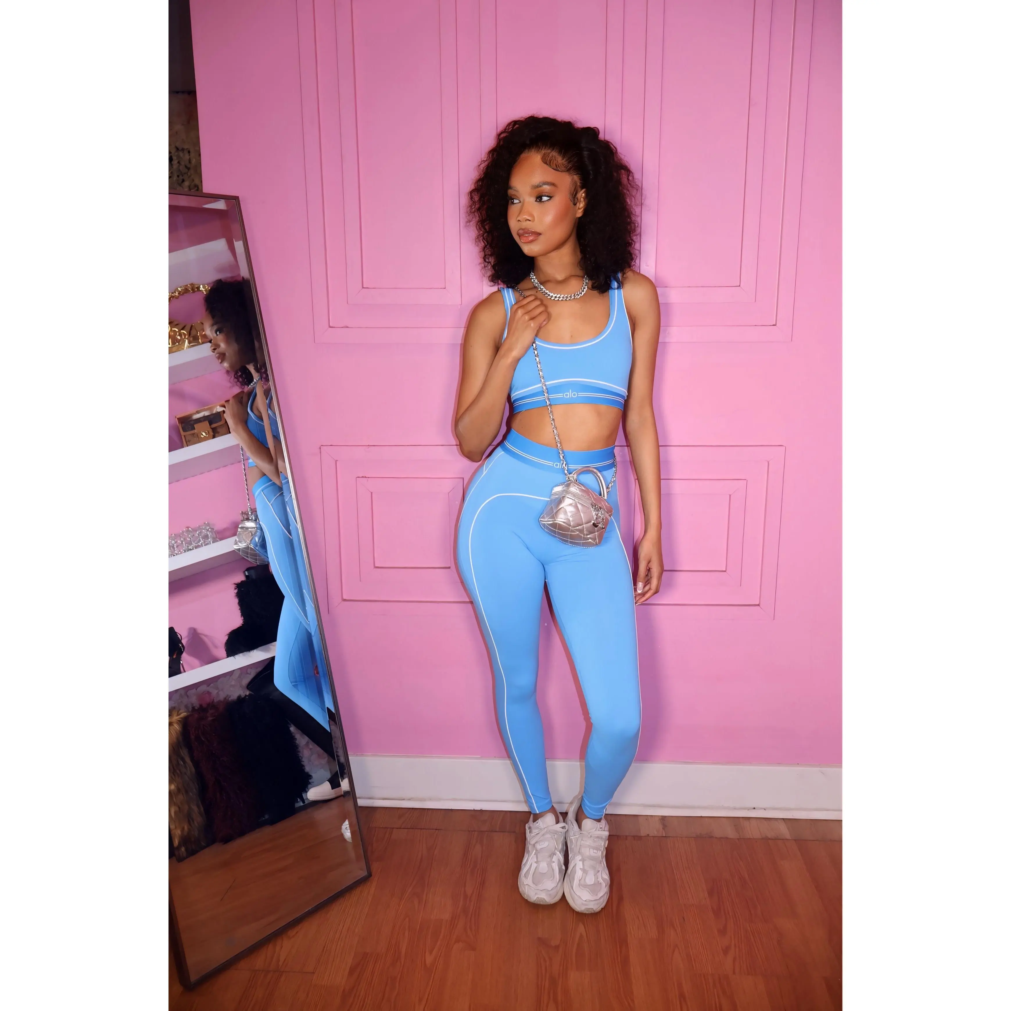 Fresh and vibrant, the Lo Active Set in blue is made for movement and everyday style. This two-piece set features a supportive bra top and high-waisted leggings that sculpt and flatter your figure. Designed with a soft, stretch fabric, it provides comfort and flexibility whether you're working out or on the go.