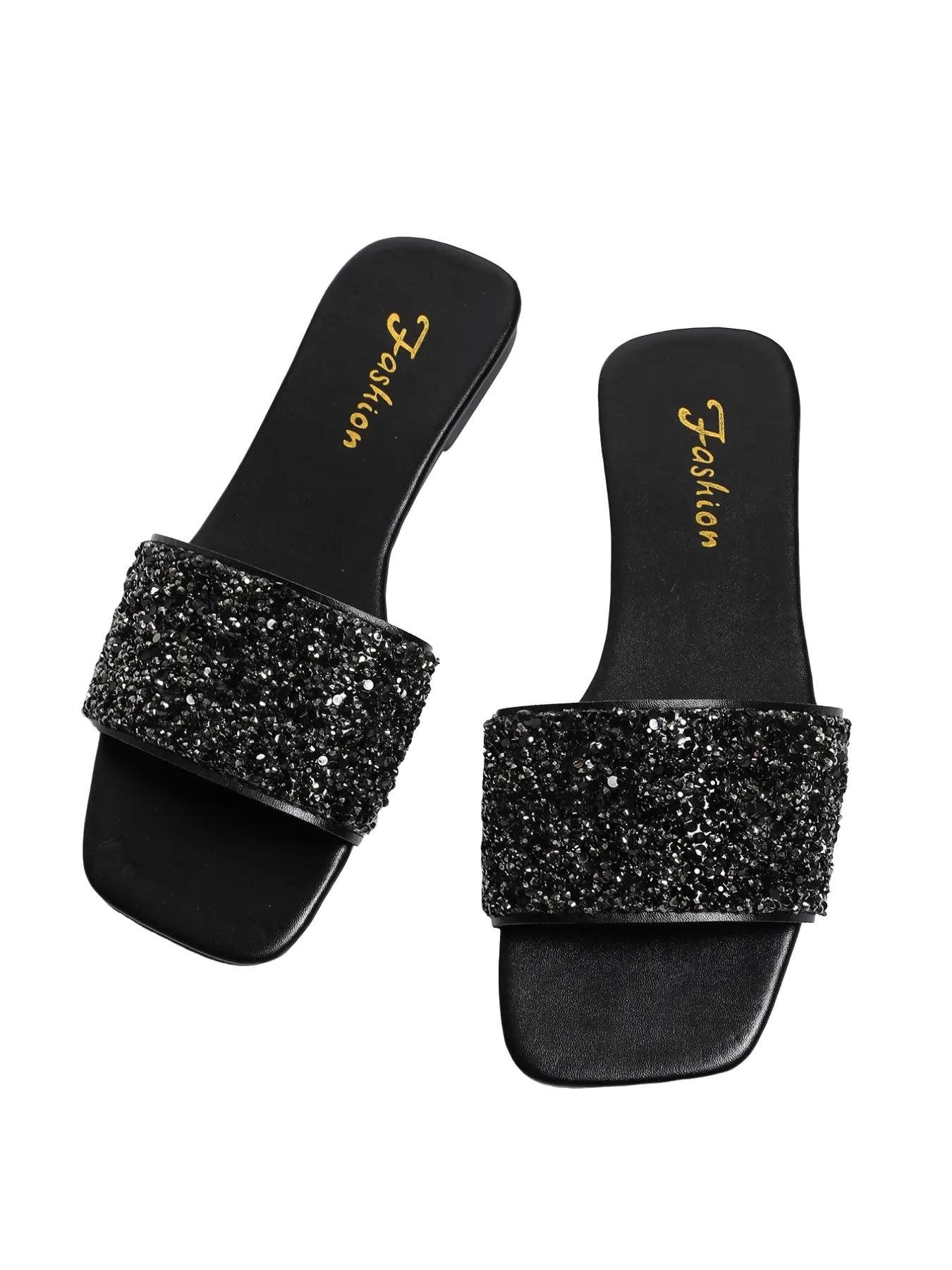 【Rhinestone Detailing】: Adorned with sparkling rhinestones, these sandals add a touch of luxury to any outfit.