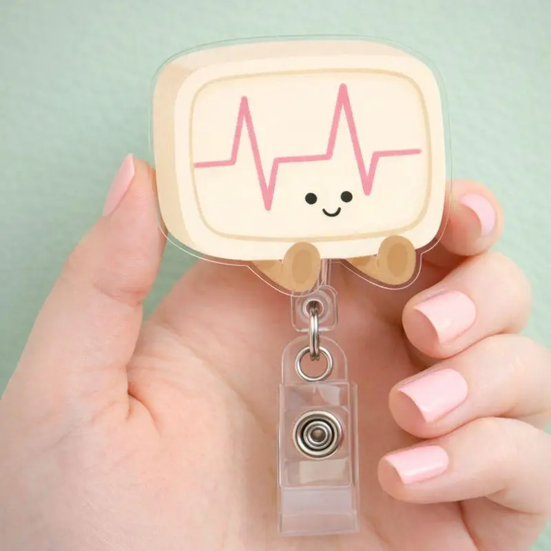 Custom Shape Acrylic Badge Reel with Charm is a fun and handy way to carry your ID or add some style to your day! It comes with a cute pacifier charm and blends toughness with personality. Here’s what makes it awesome: