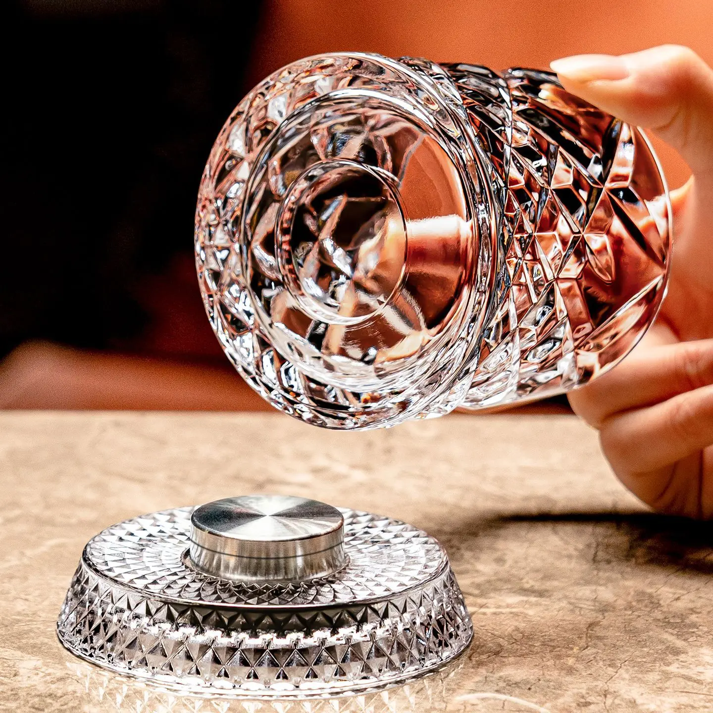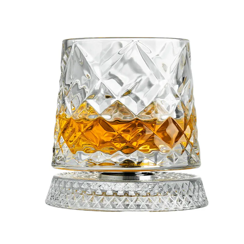 Rotating whiskey glass, stress-relief tumbler, light luxury embossed glass cup (set of two)
